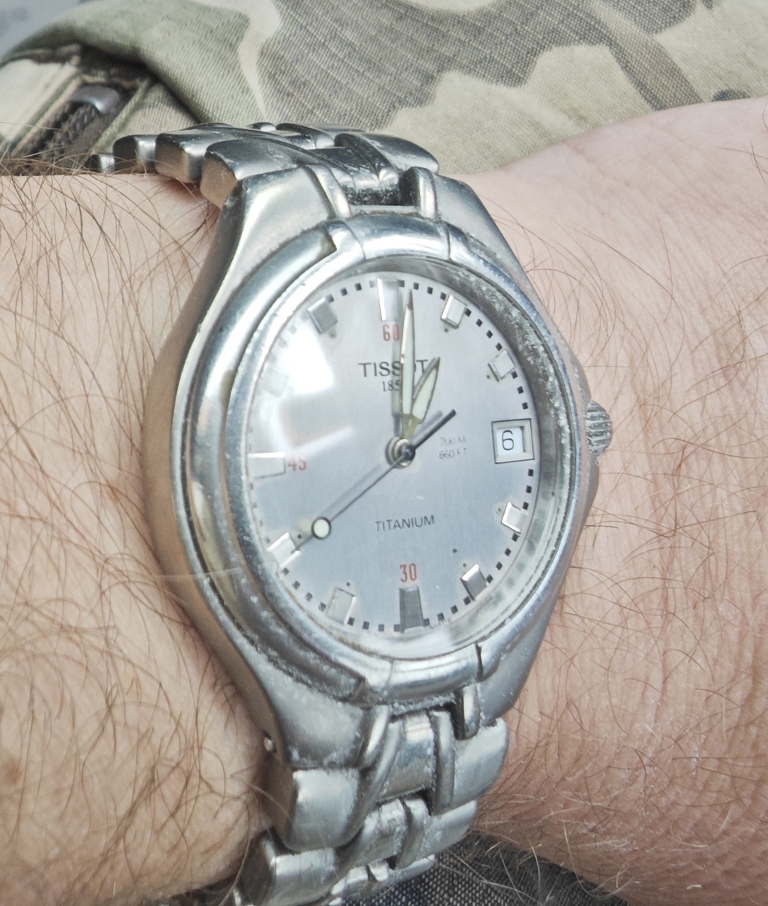 Титановым Tissot больше 20 лет. Использую их во время физических работ, на активном отдыхе и т.п. Даже сейчас они в известке и опилках. Но с царапинами всё более чем прилично для такой рабочей лошадки.