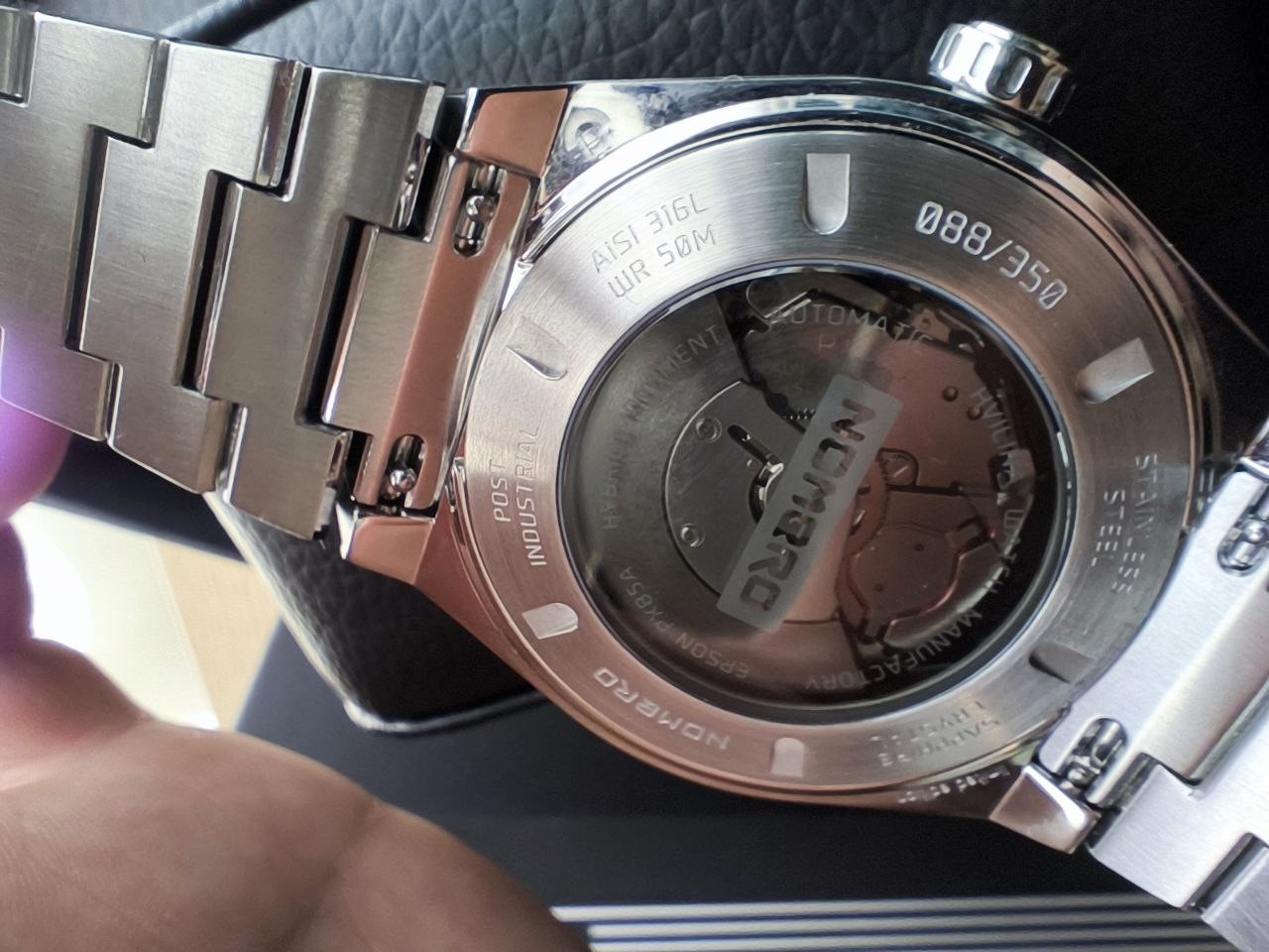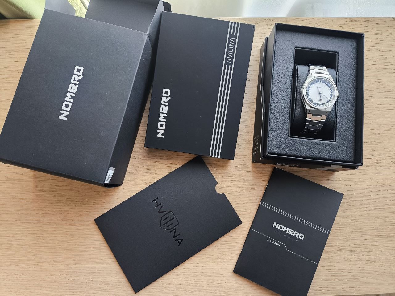 Пол: мужские Год покупки: 2025 Новые часы, состояние: N- (новые) http://forum.watch.ru/images/market-question.png Цена: 39 000 руб. (продажа) Коробка: есть Документы: есть Часы Hvilina Nombro Hybrid Post Industrial. Часы новые, полный комплект, только примерялись, реально не носились. На гарантии, приобретены 22 августа (гарантия 12 мес.) Интересные часы в стиле кибер-панк, дизайн разработан белорусским брендом Hvilina. Комплект полный: Часы; коробка, включая транспортировочную; инструкция в фирменном конверте; дополнительные звенья браслета; приспособление для проверки заряда аккумулятора. Главные особенности модели: гибридный механизм EPSON PX85A Hybrid Automatic (Seiko Group) с функцией GMT и даты, а также спроектированный HVILINA стальной браслет. Часы весьма крупные, по фотографиям так не кажется (точные размеры см. в "характеристиках"). Вложение 3885992 Вложение 3885993 Вложение 3885994 Вложение 3885995 Вложение 3885996 Вложение 3885997 Характеристики: механизм - EPSON PX85A hybrid automatic, кварцево-механический, 7 рубиновых камней, запас хода без подзарядки около 6 месяцев, точность хода -20+20 секунд в месяц; функции – GMT, дата в месяце, проверка уровня заряда элемента питания; стекло фронтальное – сапфировое с антибликовым покрытием; стекло задней крышки - минеральное, тонированное с печатью; материал корпуса и браслета – нержавеющая сталь марки 316L; люминесцентное покрытие - Superluminova; водонепроницаемость – 50 м; диаметр корпуса - 41 мм; толщина корпуса - 12 мм; система быстрой смены браслета; ширина основания браслета (стыковочного звена) – 20 мм; лимитированная серия - 350 шт. каждой модели. В данном случае 88/350. Полная предоплата на карту 39 000р + Ваши расходы на отправку (отправка СДЭКом или Почта РФ). Возможна личная встреча в г.Санкт-Петербург |