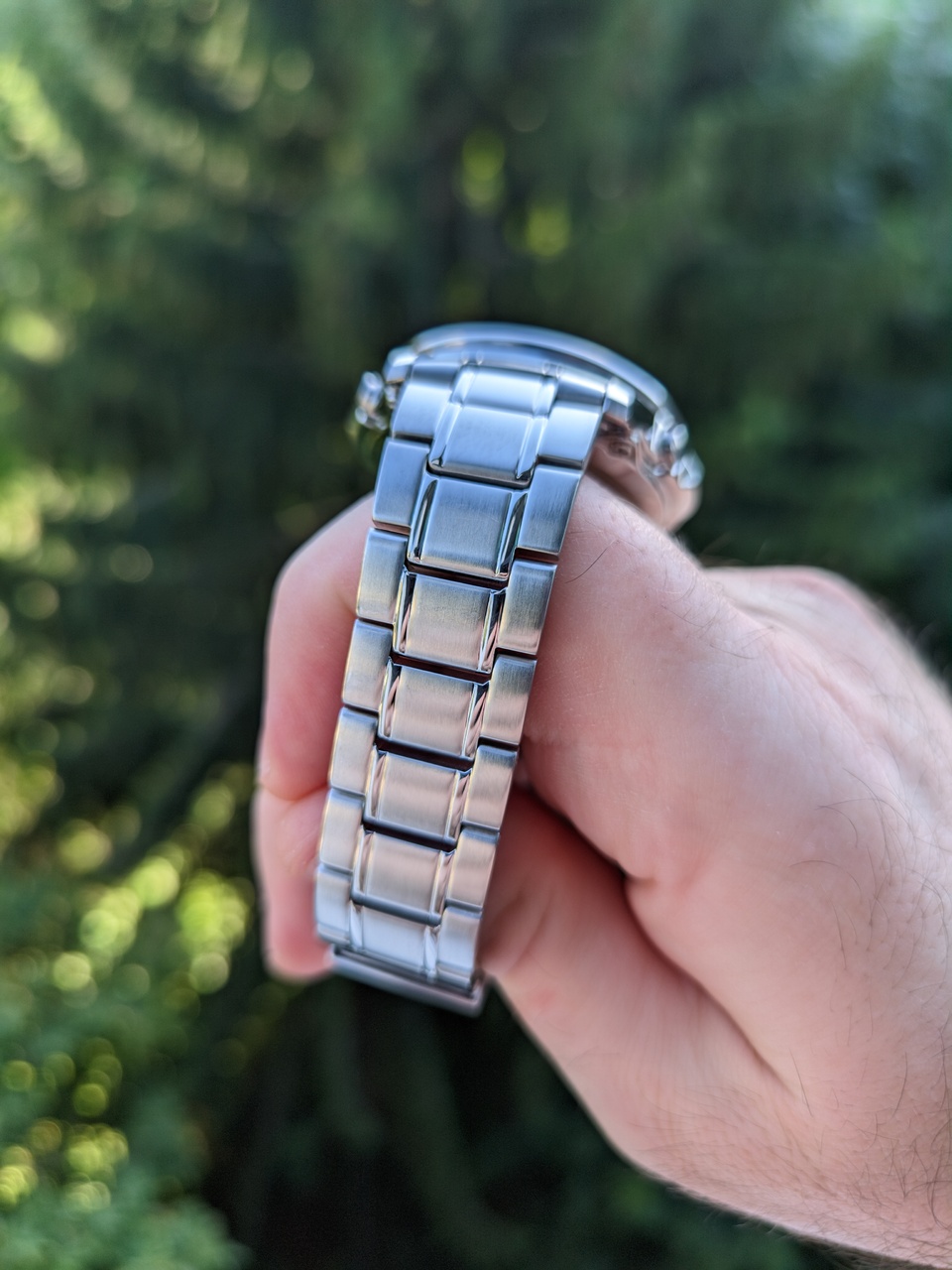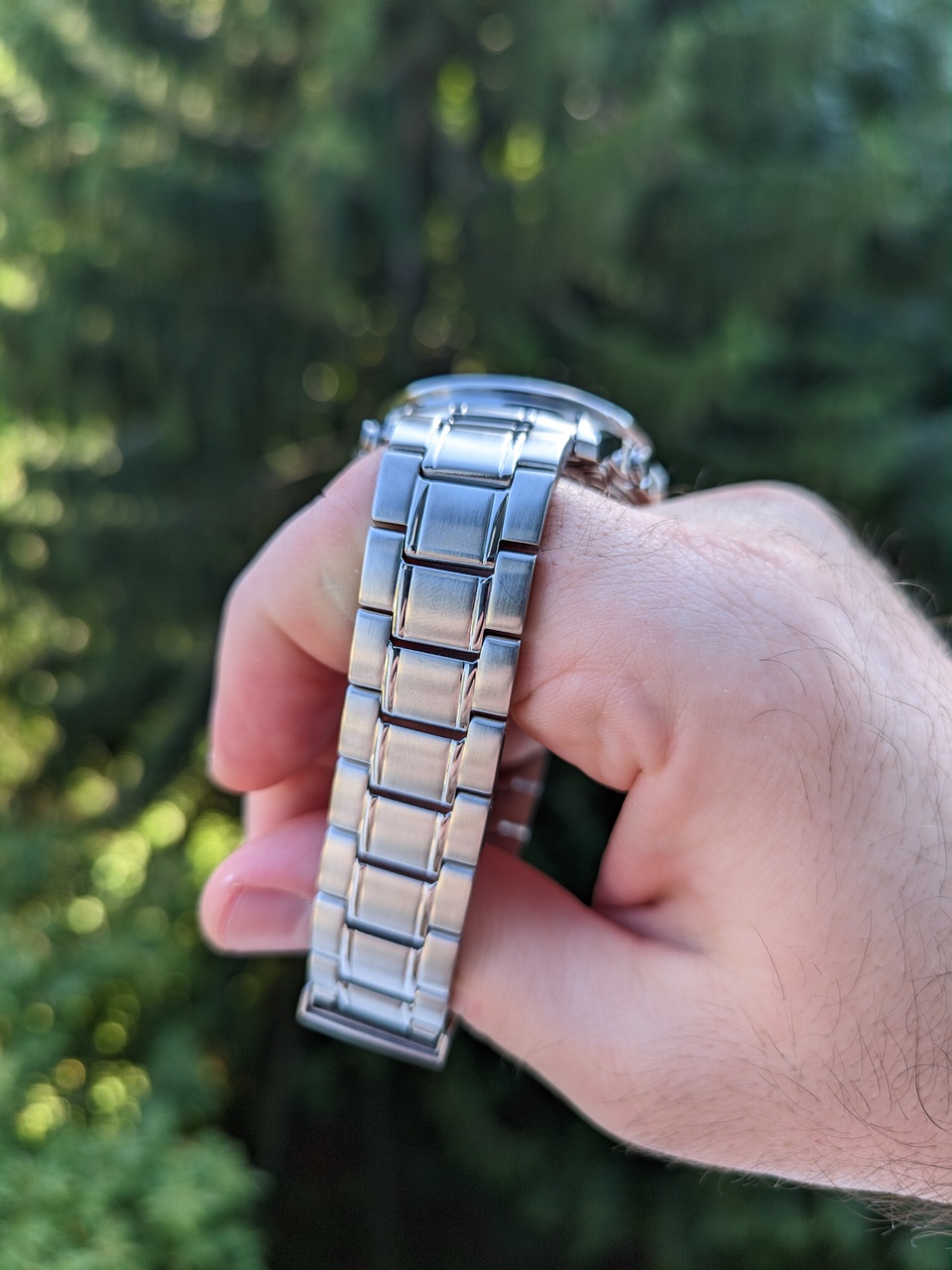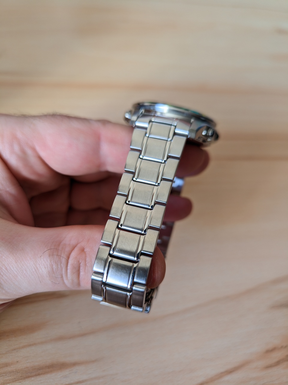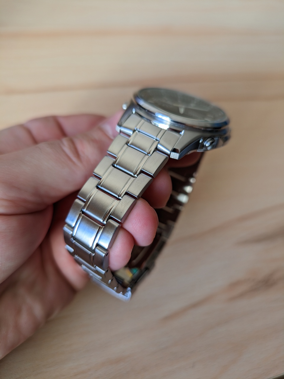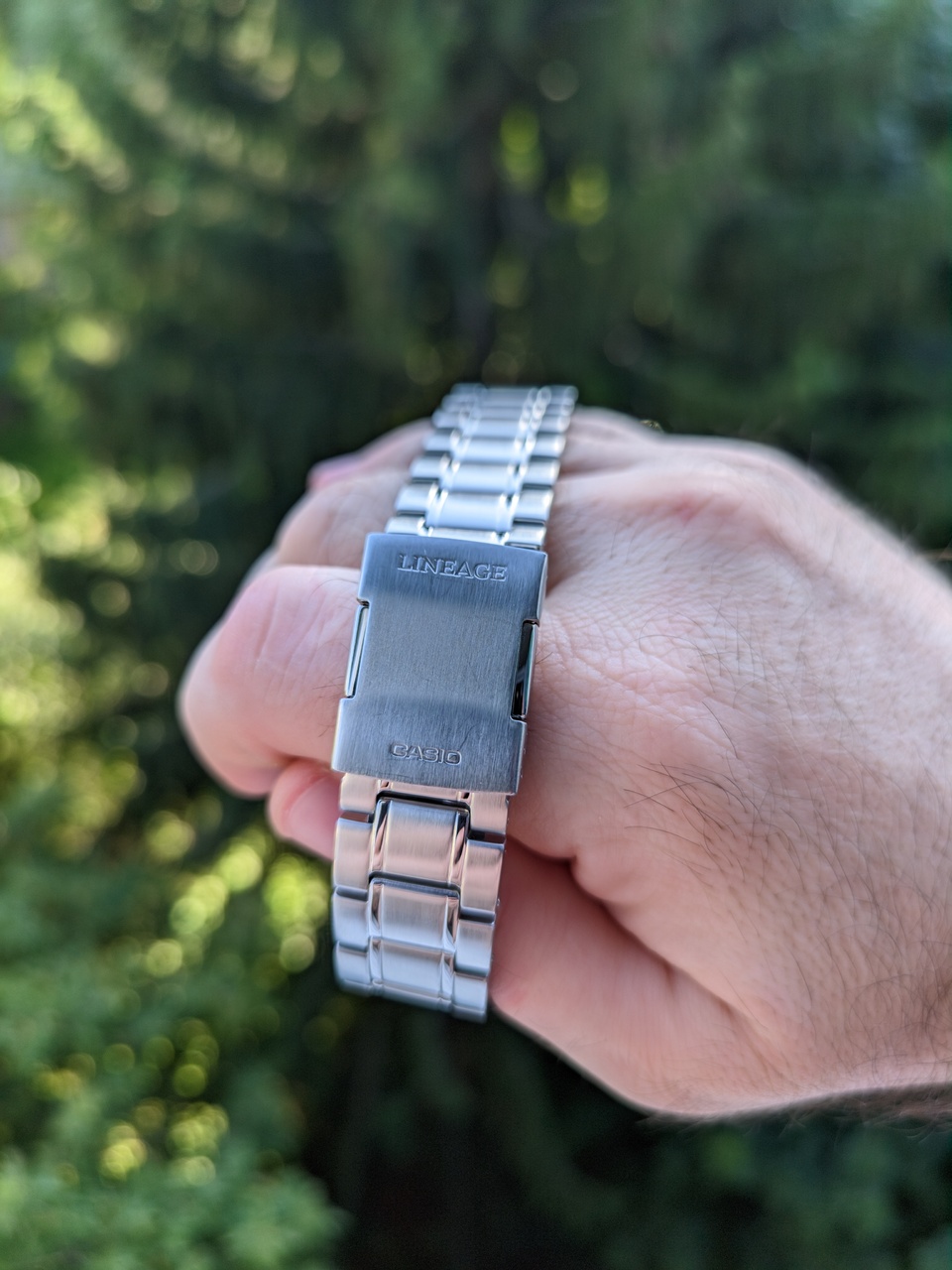 Пол: мужские Год покупки: 2024 БУ часы, состояние: AA (отличное) http://forum.watch.ru/images/market-question.png Полировка: нет Цена: 18 000 руб. (продажа) Коробка: есть Документы: есть Часы с большой буквы, настоящий Японский инструмент, без преувеличения! Куплены в Японии в июне 2024 года, в крупнейшей сети магазинов часов. Часы свежие, произведены 3 октября 2023 года, согласно серийному номеру на крышке часов (276-ой день 2023г.), на витринах не стояли, коробка была запаяна в заводскую пленку. Есть мелкие царапины и небольшие потертости на браслете, всё видно на фото и видео, даже излишне. На стекле ни одной царапины нет. Браслет полной длины. Аккумулятор полностью заряжен до максимального уровня. Срок службы аккумулятора не менее 10 лет. Полный комплект - коробка, бирки. Данная модель производится исключительно для внутреннего рынка Японии, аналогов на экспорт не производилось и официально не поставлялось. Часы изготовлены полностью из нержавеющей стали, классический японский дизайн, объемный, очень красивый и информативный циферблат с двойной индикацией (цифровая и стрелочная), прекрасная читаемость всех показаний, широчайший функционал, и высокое качество Casio! Отличительная особенность модели - гильошированный циферблат, гильоше в виде вертикальных полос нанесено на саму солнечную панель, что редкость даже на гораздо более дорогих часах. Метки не просто накладные металлические, на поверхности каждой сделаны микро насечки, что улучшает читаемость и добавляет игры света. Циферблат максимально заполнен, но не перегружен, все элементы функциональны и информативны. Кнопки в часах нажимаются мягко, все переключения и настройки интуитивны. Читаемость так же превосходная, индикация времени четкая, контрастная, на стрелки нанесена белая краска и люминофор, что усиливает контраст с циферблатом. Модуль часов отдельная тема для обзора. По моему мнению это лучший модуль у Casio. Два дисплея с отображением дня недели, секунд и текущего времени или даты. На девяти часах расположен индикатор уровня заряда аккумулятора и режима работы часов. Часами очень удобно пользоваться в повседневке, переключать режимы, таймер, секундомер, текущее время. Есть возможность выбора часового пояса Москва, которого нет в большинстве других моделей, что облегчает настройку радиосинхронизации. У меня в Туле синхронизация почти каждую ночь проходила, за редким исключением, часы лежали в коробке, в шкафу. Стрелки автоматически синхронизируются с цифровым временем. Автоматический переход на второй часовой пояс по одному нажатию. По водозащите, 50 метров или 5 Атм. С 50м от Casio можно смело купаться, но без ныряний и прыжков. В часах уставлена солнечная батарея, вам не нужно менять батарейку, часы заряжаются от солнечного света. Имеется интеллектуальный режим энергосбережения, в зависимости от освещенности, т.е. каждую ночь часы засыпают и просыпаются с вами, включая и выключая дисплеи автоматически. Сами засыпают, если вы ими долго не пользуетесь и оставили в темноте, переводя стрелки в режим ожидания. Срок службы аккумулятора не менее 10 лет. Автоматическая светодиодная подсветка, активируется в зависимости от окружающей освещенности, при повороте руки. Основные функции: мировое время с быстрым переключением стрелок в выбранный пояс, секундомер, таймер, будильники, сигнал начала часа. Сигнал достат