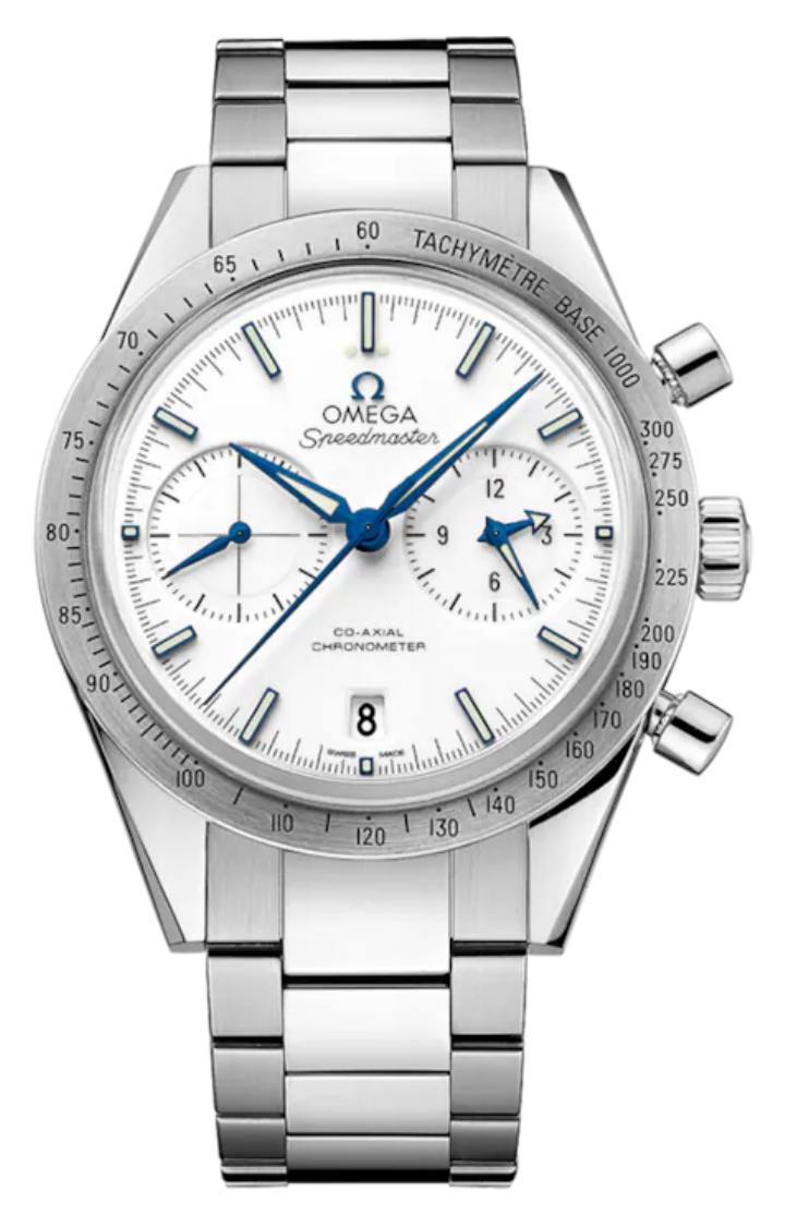 Цена! Легкие Omega Speedmaster 57 Co-Axial Chronograph 41.5 mm 331.90.42.51.04.001. Корпус и браслет из титана. 41,5 мм. Белый циферблат. Водонепроницаемость 100 метров.