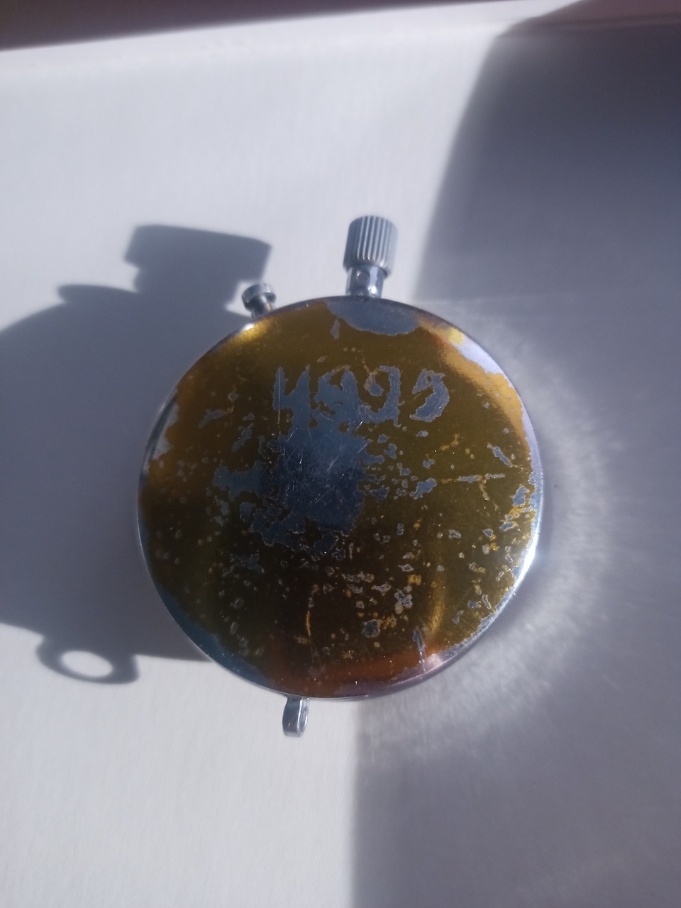 Видел только новые Агат на 30 секунд, а этот старый. Интересно видели ли Вы такие секундомеры, очень редкие ли они, и какая цена может быть. Цифра внутри рядом с рычагом пуска баланса 7783. 16 камней. Буду рад любой информации. Под циферблатом лежат кусочки отвалившейся эмали с циферблата, чем можно подклеить и может дадите еще какие-то советы, я абсолютный любитель-новичок-энтузиаст. Буду благодарен. Сейчас заметил что слева винт который держит механизм в корпусе криво стоит. Думаю из-за него как то потрескался циферблат, но не пойму как такое произошло, винт как раз под местом где потрескалось. Спасибо! Вложение 3895921 Вложение 3895922 Вложение 3895923 Вложение 3895924 |
