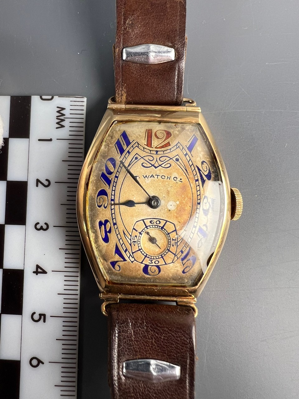 Часы муж наручные золотые 583 пр. дореволюционные Tavannes Watch, Dulon Neuchatel