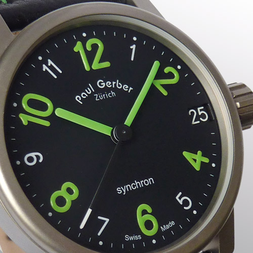 Модели имеют круглый титановый корпус, диаметром 42 мм, водонепроницаемый до 100 метров. Завинчивающаяся заводная головка. Сапфировое стекло на лицевой стороне корпуса и на его задней крышке (на семи винтах). Циферблат черный. У модели Pilot арабские цифры, индексы, часовая и минутная стрелки белые, с люминесцентным покрытием Superluminova. У модели Synchron арабские цифры 2, 4, 6, 8, 10 и 12, а также часовая и минутная стрелки, с зеленым люминесцентным покрытием. Модель оснащена модифицированным автоматическим механизмом ETA 2824-2, с тремя параллельно вращающимися роторами из 18-каратного золота и доработанным увеличенным индикатором даты. Калибр диаметром 36 мм, толщиной 6,1 мм, на 25 камнях, с запасом хода 38 часов, функциями индикации часов, минут, секунд (центральные стрелки) и даты (в апертуре на 3 часах). Кожаный ремешок с титановой застежкой. Цена обеих моделей по 3750 евро. Вложение 114176Вложение 114177 По материалам: http://www.watchtime.net/nachrichten...otorenballett/ http://www.gerber-uhren.ch/e/modell_42.html |