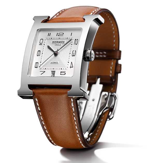 Новая модель Heure H Tres Grand от Hermes имеет квадратный корпус со стороной 32 мм, из нержавеющей стали, водонепроницаемый до 30 метров. Сапфировое стекло с антибликовым покрытием.