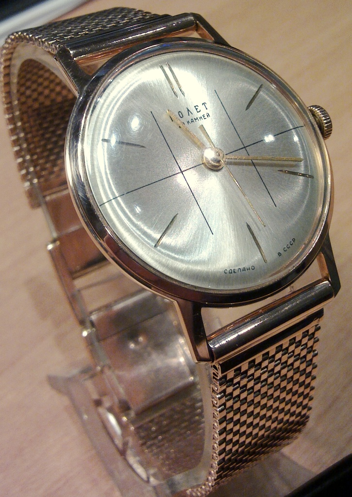 Есть вот такие часы. В представлении и подробном описании не нуждаются (фотка нагло украдена). В таком исполнении в золоте они никогда не отливались. Но, очень нужно сделать эти часы в золоте. Что это может быть за донорский корпус? Вымпел? Ракета? Более поздние Полеты? У них другой вид ушек.... Да, понимаю что будет не аутентично. Кто может помочь с донором? Куплю не обижу! Поверьте, очень надо. |
