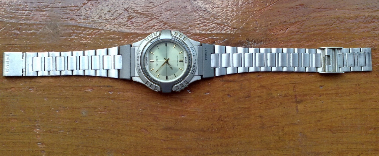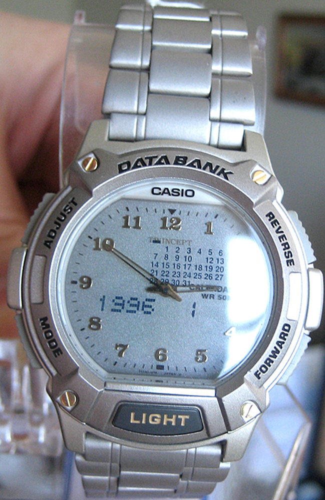 Twincept – достойные часы! Непонятно почему в Casio отказались от технологии размещения цифровых показаний поверх стрелок, на стекле. Что касается удобства восприятия информации – ставлю твёрдую пятёрку. Для того чтобы убедиться в справедливости оценки обратите внимание на PRW-5000 где использован LCD дисплей, в результате чего показания частично закрываются стрелками и это в часах ориентированных на туризм, где читаемость показаний имеет не последнее значение. Функциональность: телефонная книга на 30 номеров; Мировое время; Будильник (продолжительность работы будильника 20 секунд); Сигнал в начале каждого часа; Автоматический календарь до 2039 года; Подсветка. Корпус – крашеный пластик. Стекло – пластик. Браслет – нержавеющая сталь. Водонепроницаемость: 50 m, 5 BAR. |