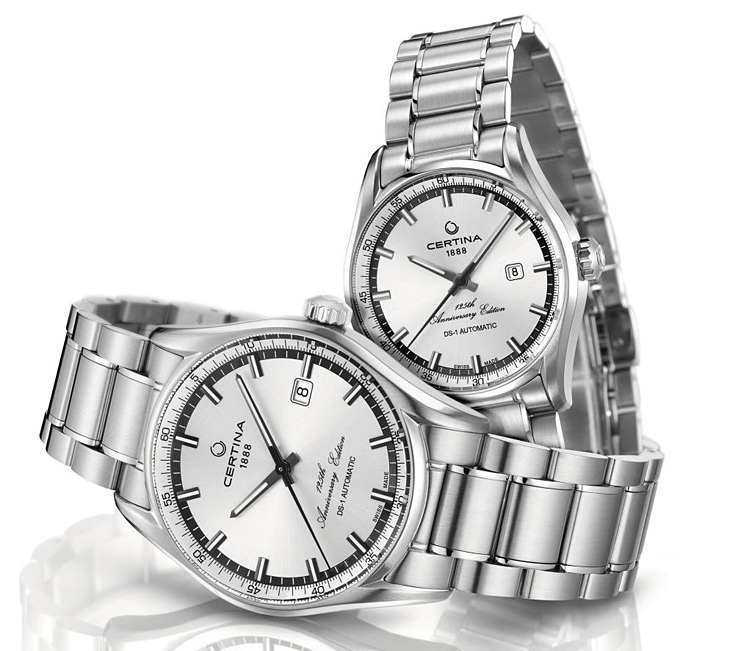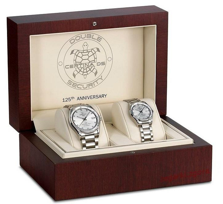 "Немногие хронографы могут похвастать точным хронометром. Новинка от Certina, часы DS-2 Chronograph с механизмом ETA PRECIDRIVE, может смело заявить именно о таком хронографе. Великолепная детализация и безошибочная точность новинки, выпущенной стандартной или лимитированной (с сертификацией COSC) версией, удовлетворит требования даже самых искушенных ценителей часов. В сердце часов Certina DS-2 Chronometer Chronograph – швейцарский кварцевый механизм ETA PRECIDRIVE 251.264 CEN с погрешностью 0,01 сек и функциями индикации 12 часов, 30 мин, 60 сек и даты. Новый механизм гарантирует точность хронометра в спортивном дизайне множества моделей, в том числе моделей из лимитированной 1888 экземплярами серии. Лимитированная серия посвящена 125-летию Certina. Вложение 568806 Вложение 568807 Вложение 568808 Вложение 568809 Помимо спортивной элегантности, брашированного или полированного 41-мм корпуса из нержавеющей стали 316L, антибликового сапфирового стекла и алюминиевого безеля с тахиметрической шкалой, впечатляет своим дизайном и сам циферблат. В стандартной серии цветные стрелки – на фоне черного циферблата; модели комплектуются кожаным ремешком с раскладной застежкой. В лимитированной серии Certina DS-2 Chronometer Chronograph серебристый циферблат с черными счетчиками хронографа создает фон для никелированных черных стрелок и часовых индексов и комплектуется трехрядным браслетом из нержавеющей стали. Благодаря концепции DS, которая обеспечивает высокий показатель водозащиты, водонепроницаемость часов составляет 100 метров. На обеих моделях, как в стандартной, так и в лимитированной серии, на заднюю крышку корпуса нанесен символ черепахи компании Certina, на лимитированной серии присутствует еще и номер часов." "В честь своего 125-тилетия, часовая компания Certina выпустила лимитированные парные модели DS-1 Automatic Anniversary Edition Pair (состоящий из мужской и женской моделей). Часы выполнены в круглых корпусах из нержавеющей стали, диаметром 39 мм и 30 мм соответственно. Водонепроницаемость часов до 100 метров. Заводная головка часов с украшена логотипом бренда Certina. Сапфировое стекло с двойным антибликовым покрытием защищает серебристый циферблат с накладными часовыми индексами, стрелками, покрытыми люминесцентным составом. В новинках установлен автоматический механизм ЕТА 2824-2 в мужской версии и ЕТА 2671 в женской, с индикацией часов, минут, секунд и даты. Часы выпускаются на браслете из нержавеющей стали с раскладной застежкой. Всего будет выпущено 1888 экземпляров в честь года основания компании." Вложение 568814 Вложение 568815 Взято отсюда:http://watchpaper.ru/2013/10/certina...r-chronograph/; и отсюда: http://www.conquest-watches.ru/news/?ELEMENT_ID=64204 И в дополнение ссылочка на оффициальный сайт Сертины с очаровательным видео в честь своего 125-летия http://www.certina.com/ru/o-kompanii.../istoriya#2013. |