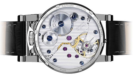 К минусам этой модели можно отнести и ее габариты – овальный корпус 40мм на 47мм и высотой 11.1мм. Но качество внешнего оформления с рельефным циферблатом и свежим необычным видом делают этот недостаток практически незаметным. Сапфировое стекло, прозрачная задняя крышка, водостойкость 50 метров. Серия лимитирована по 999 штук в каждом из вариантов. Источник |