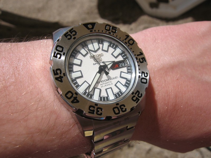 Изначально искались недорогие часы «выходного дня», когда можно снять костюм и одеть джинсы. Часы, в которых можно без опаски за дорогой механизм стрелять, ловить рыбу, купаться и бегать по лесам. Уходя в предысторию выбора вторых (или третьих?) часов, я опирался на опыт использования Seiko 5, подаренных отцом больше десяти лет назад. С ними меня связывают весьма и весьма теплые отношения, и часы ни разу меня не подвели за все время. Тем не менее, новые Неомонстры меня не впечатлили. Да, красивые, да, удобные, но в душу не запали. И за полгода владения, я таскал их изредка. Но на прошлой неделе начался отпуск. Когда впервые в часах спускаешься и плывешь в море, это очень необычно: свет через кристально чистую воду преломляется и отражается от часов. По- другому смотрится белый цифер, очень нарядный и совсем не обыденный, проявляется отделка браслета, сатинированного с частичной полировкой, словно хвост креветки, или чешуя крупной рыбы, переливающийся на солнце. Класс. Никогда не думал, что дайверские часы способны принести столько положительных эмоций. Странно, но они совсем не кажутся массивными, несмотря на огромный безель. Обладают очень мягкий удобным и надежным литым браслетом с двойным замком. А еще я нашел четыре треугольных уступа с внутренней стороны часов у крепления браслета. Наверное, это упоры противоскольжения при ношении на гидрокостюме, не знаю, но на руке не мешают. Итак, генератор положительных эмоций… Вложение 134691 Вложение 134692 Вложение 134693 Вложение 134694 Вложение 134695 |