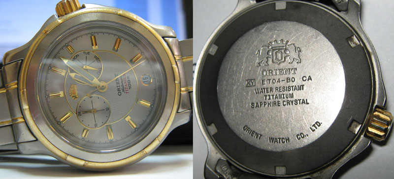 я бы сказал, что это оригинальные часы Ориент, производство начала 2000-х может конца 90-х, механика автоподзавод, титановый корпус, водозащита 100м(там так написано)