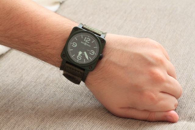мерил такие часы/но мне хаки не очень идут/купил черные стальные/но все таки переодически сомневаюсь идут они мне или нет/ношу омегу а потом начинаю скучать по беллроссу и надеваю их/думал они будут круто идти на открытую руку/но нет - наоборот под свитер рубашку - самое то