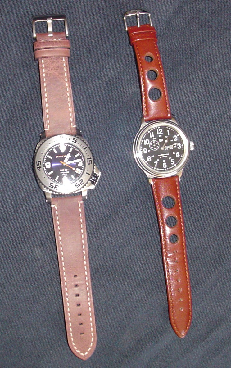 Просматривая форум, увидел отчёты по этим часам. Понравились внешне. Тем более, что висели сочные фотографии, которые не могли не привлечь внимание досужего наблюдателя. А когда увидел фотографии этих часов на ремешке, то в голове свербила только одна мысль. Очень захотелось купить. Что бы были русские брутальные часы. И дизайн оригинальный, и красивые что бы по-своему были. И что бы с ними и в огонь, и в воду :) Вот я и купил их. С начала к ним купил чёрный ремешок, но, на мой взгляд, гармонию с ним не поймал :) Потом меня осенило, что нужен коричневый широкий с белой прострочкой и мне станет от этого вида хорошо. Опять пришёл к часовщику, ещё раз с ним поздоровался и купил тот ремешок, который вы сейчас видите на фото :) Прошу прощение за плохие фотографии. Часы даю в сравнении с К-43, которые то же немаленькие. Одев "Красное Море" на запястье, чувствуешь ВЕЩЬ. Фотографии не передают характер часов, их живость, если хотите. Эти часы толкают на ПОСТУПОК :)Вложение 138970 Вложение 138971 Вложение 138972 Вложение 138973 |