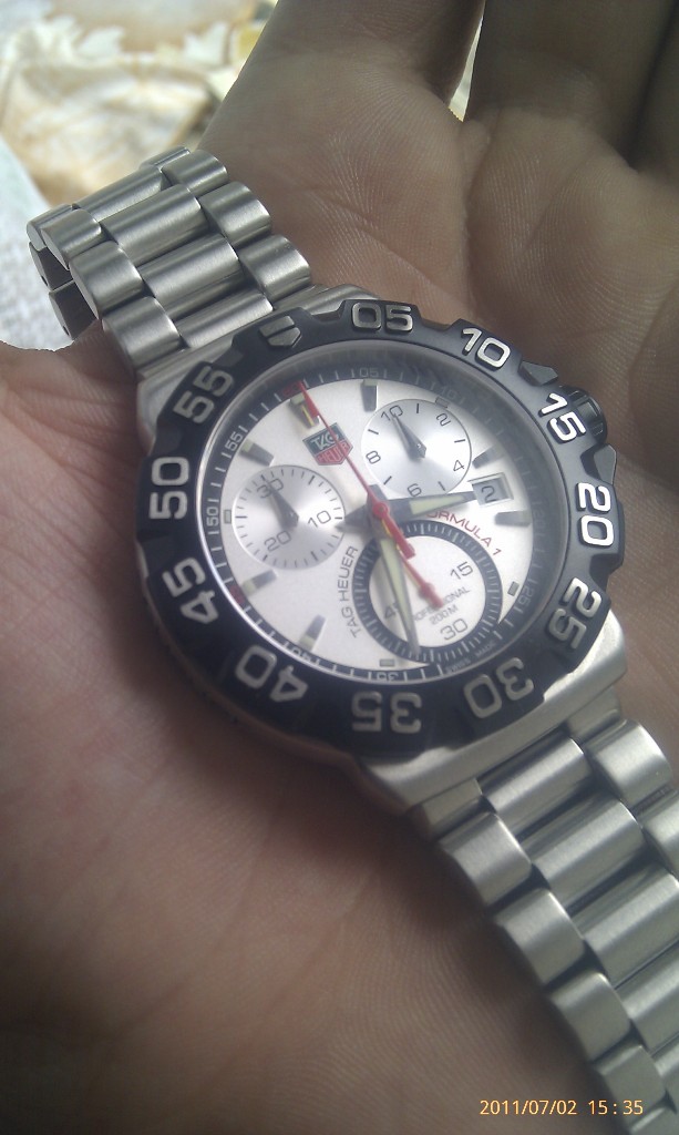 Други, принимайте в таговоды! Где-то с полмесяца назад случайно зашел в часовой магазин и понял, что произошло обострение моей восьмимесячной ЧБ. Недолгие раздумья и выборы лекарства между орисом лимиткой нико росберга и тагом формула 1 привели меня вот к этим замечательным часам. Завтра сменю батарею, подгоню браслет и в путь! Теперь главное, хотябы до НГ не приближаться к часовым магазинам:)