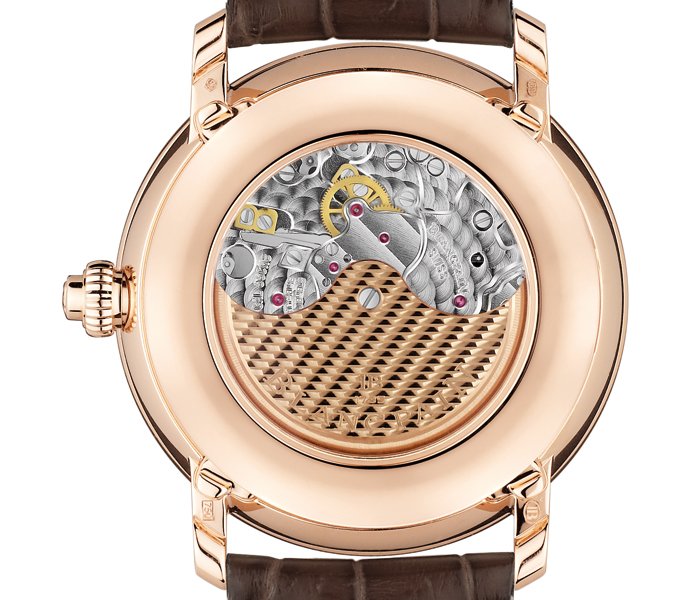 Круглый корпус из 18-каратного красного золота (Ref.: 6685-3642-55B) или из нержавеющей стали (Ref.: 6685-1127-55B), диаметром 40 мм, толщиной 12,98 мм, водонепроницаемый до 30 метров. Сапфировое стекло на лицевой стороне корпуса и на его задней крышке. Циферблат гильошированный опаловый или белый с накладными часовыми индексами в виде римских цифр. Модель оснащена автоматическим механизмом 66CM8, толщиной 7,50 мм, диаметром 30,2 мм, состоящим из 450 деталей, на 35 камнях, с запасом хода 40 часов, функциями индикации часов, минут(центральные скелетонизированные стрелки), даты (центральный изогнутый стрелочный указатель из вороненой стали), дня недели и месяца (в апертурах, соответственно, между 11 и 12 часами и между 12 и 1 часами), фаз Луны (указатель на 6 часах), а также с однокнопочным хронографом (центральная секундная стрелка, 30-минутный счетчик на 3 часах, 12-часовый счетчик на 9 часах). Калибр отлично отделан, ротор автоподзавода золотой, гильошированный. Поставляется на коричневом или черном ремешке из кожи аллигатора с застежкой из 18-каратного красного золота или из нержавеющей стали. Вложение 141978Вложение 141979Вложение 141980Вложение 141981 Источник: http://journal.hautehorlogerie.org/e...-complet-2805/ |