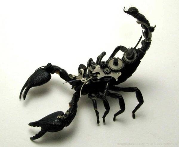 Стимпанк - технофентези скульптуры из подручных обломков. Помнится в советское время у меня был знакомый - делал крабов, раков и прочую животину, мне было лет 10 - тоже напаял из "жигулевских" пробок с выдавленными буквами монстров - живенько... тогда часами не больно раскидывались, даже поломанными...