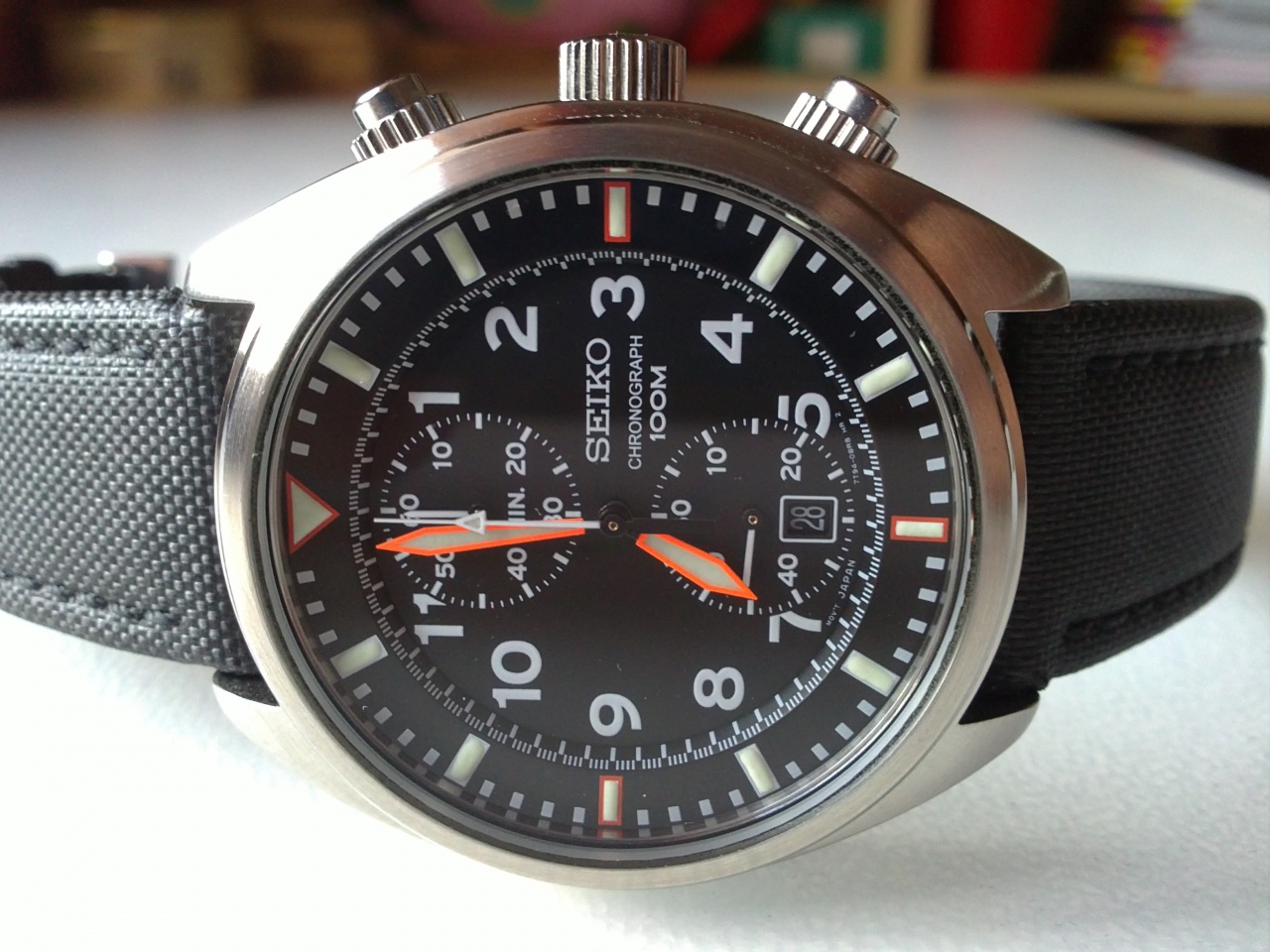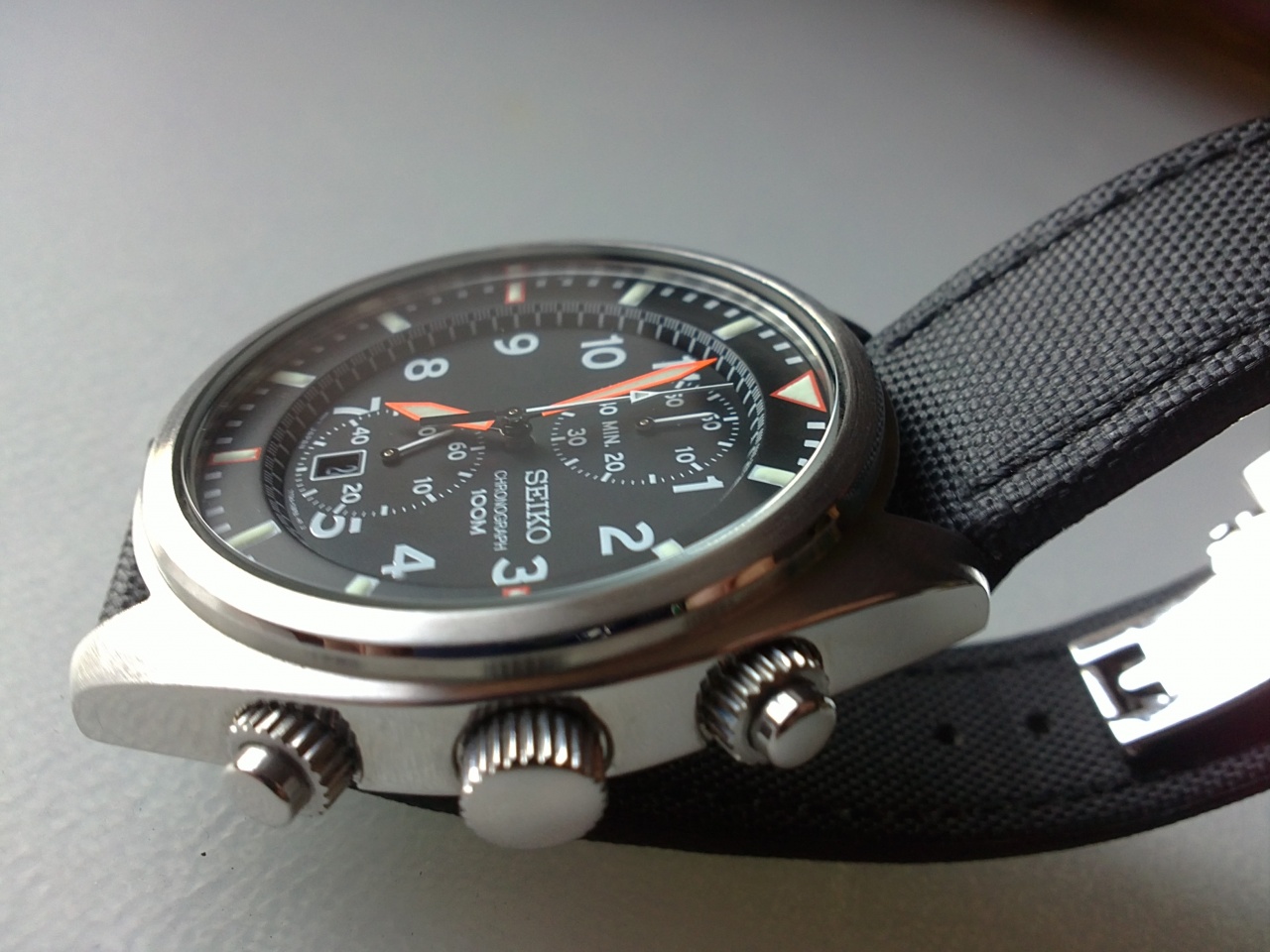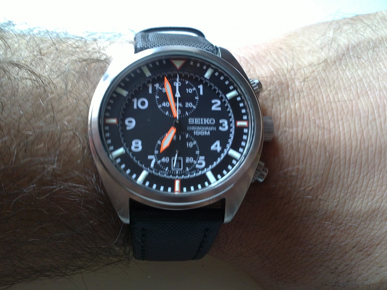 Недорого не значит плохо! Спасибо любимой Сейке, с удовольствием отмечаю , что даже не дорогие, а кто кто то скажет дешёвые модели не лишены изящества и привлекательности. Несколько фото интересного на мой взгляд милитари хронографа. Здесь нет потрясающей отделки и замысловатых форм, но здесь они и не требуются. Простой надёжный механизм, информативный циферблат и очень удобная посадка на руке. Жаль ,что фиксация пушеров - фикция , но понты создают.