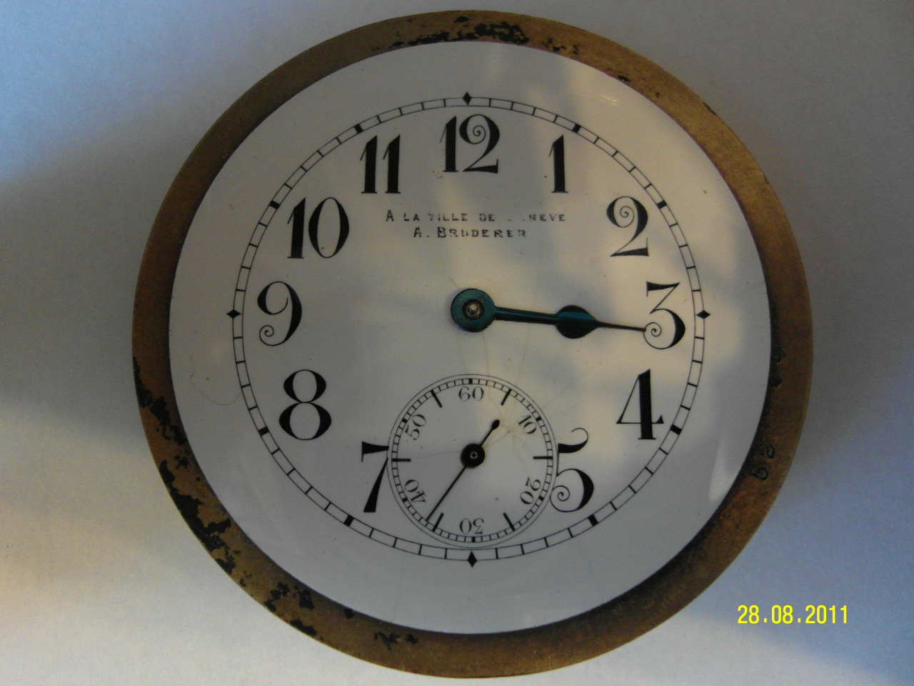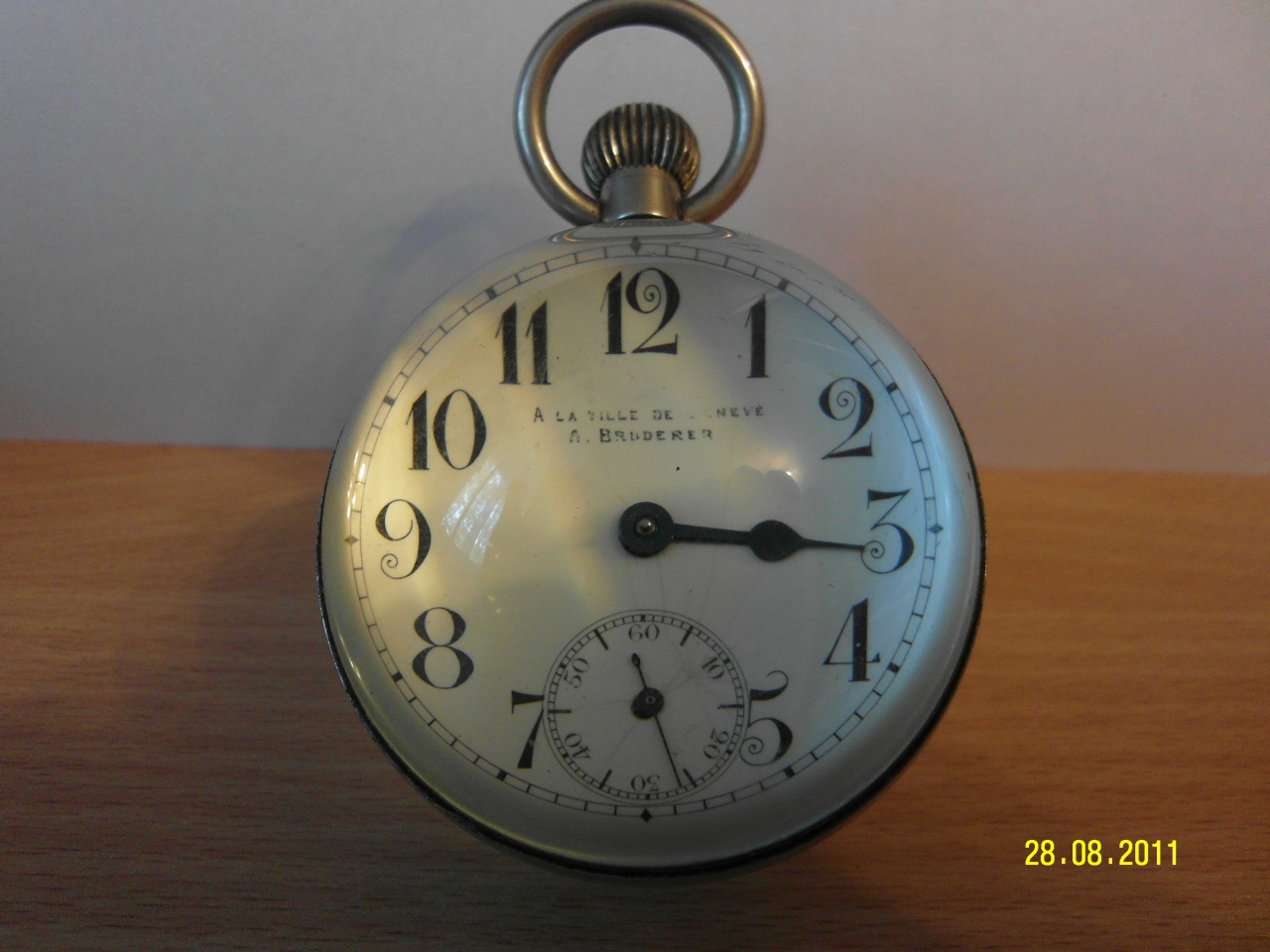 На циферблате было написано А la ville de Geneve, А. Bruderer - название торгового дома из Женевы.