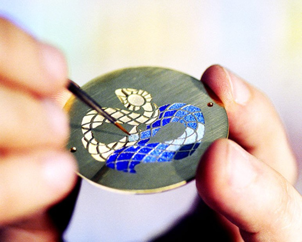 Приобретенная Donze Cadrans занимается нанесением эмали на циферблаты часов при помощи таких именитых техник, как grand-feu и cloisonne. Часовая же компания Ulysse Nardin декорирует циферблаты многих своих моделей эмалью уже 25 лет. Чтобы украсить часовой циферблат эмалью зачастую требуется в общей сумме более двух суток работы. Перед заливкой эмали на часовой циферблат наносится рисунок при помощи тончайшей золотой нити - она будет препятствовать перетеканию эмали в другие цветовые сегменты. В зависимости от сложности рисунка на циферблате часов такой золотой нити может потребоваться около 50 см.