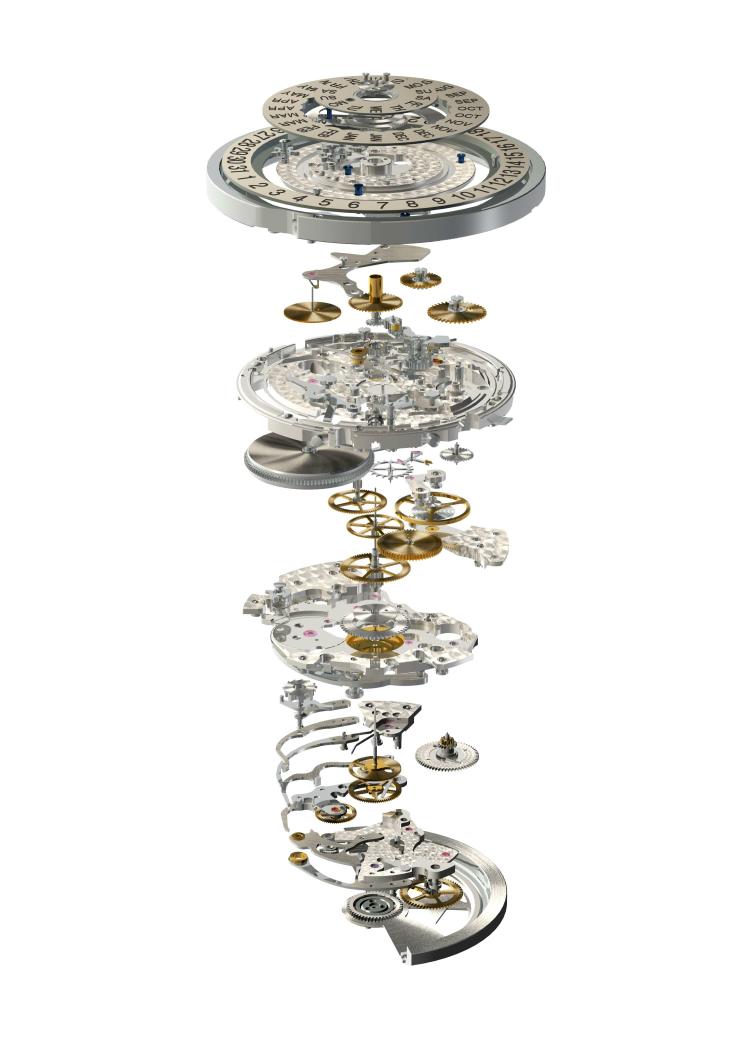 Круглый корпус новинки выполнен из 18-каратного розового золота или из нержавеющей стали, диаметром 42 мм, водонепроницаемый до 50 метров. Сапфировое стекло на лицевой стороне корпуса (с антибликовым покрытием) и на его задней крышке. Циферблат с гильошированной центральной частью, накладными часовыми индексами, а также с часовой и минутной стрелками с люминесцентным покрытием. Модель оснащена мануфактурным швейцарским автоматическим механизмом Zenith El Primero 4054, на 29 камнях, с балансовой частотой 36000 полуколебаний в час, запасом хода 50 часов, функциями индикации часов, минут (посредством центральных стрелок), секунд (на боковом циферблате на 9 часах), даты (в апертуре на 6 часах), дня недели и месяца (в сдвоенных апертурах на 3 часах), а также с хронографом (центральная секундная стрелка и часовой счетчик на 6 часах). Для обеспечения отличной считываемости показателей календаря, их показ осуществляется тремя концентрическими дисками. Внешний диск показывает дату, средний - месяц, а внутренний - день недели. Этот механизм является одновременно простым и сложным: при "показе" 31-дневного месяца, диск дат движется впереди диска месяцев; при "показе" 30-дневного месяца, диск месяцев "прыгает" на 31. Ручная настройка необходима только один раз в год при переходе с февраля на март. Поставляется на черном ремешке из крокодиловой кожи с застежкой из 18-каратного розового золота или из нержавеющей стали. Вложение 166056Вложение 166057Вложение 166058Вложение 166059Вложение 166060 Источник: http://forums.timezone.com/index.php...=5857370&rid=0 |