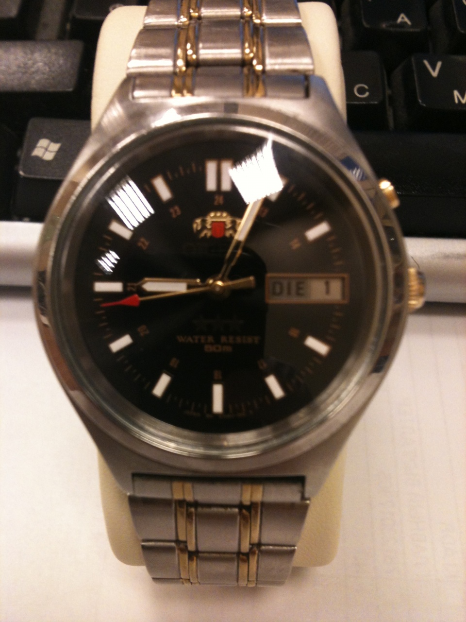 Для начала я решил собрать и привести в божеский вид и точный ход то что есть. ORIENT - у меня лет 10 уже. Сейчас это часы сына :D Правда он в свои неполные 4 года их слишком "любит" :D из-за этого был произведён кап. ремонт и они заняли почётное место в шкатулке. Tissot - это дань воспоминаниям (уж слишком много связано именно с этими часами). Оригинал (прошедший со мной огонь, воду и ...) носит друг, ибо был ими одарен в одну из редких встреч . А вот остальное (особенно UN) это необъяснимое почти маниакальное :D:D:D желание иметь именно эти часы. Грядущая покупка Omega De Will Gold или чего то в этом духе - это уже скорее следствие постоянной носки костюма и т. д. |