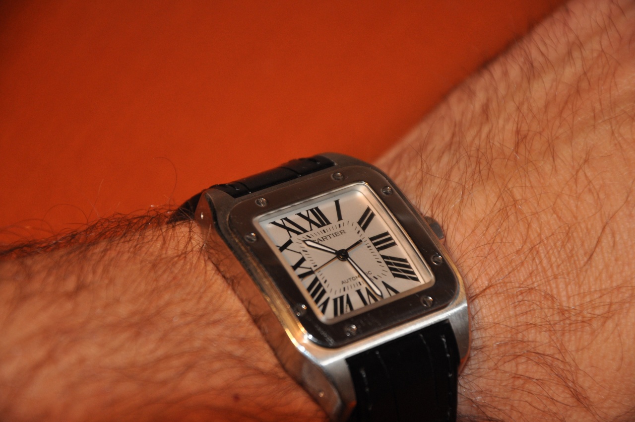 Решил поэкспериментировать с формой часов. Очень понравились Cartier Santos 100. В первую очередь своей эргономичностью: корпус-довольно толстенький и крупненький кирпичик-сел идеально. Плюс всегда хотелось попробовать часы с римскими цифрами. Не исключаю, что часов с подобным дизайном предостаточно и среди моделей фэшн-марок. Но это Cartier!:rolleyes: Вообще не собирался покупать их, т.к. на день рождения отложил деньги на Ролекс и еще в сентябре взял билет в Амстердам. Но случилось так, что неделю назад наконец решился поставить пару зубных имплантатов. И, зная от товарищей, прошедших это, что последствий в виде раздутой щеки и последующего синяка в поллица на неделю вряд ли удасться избежать, решил побаловать себя порцией положительных эмоций. Кстати, с имплантацией вообще прикольно получилось. Вкололи чего-то в вену, накинули на голову простыню с вырезом под рот и резали часа полтора. Асистенка тянула за угол рта так, что не выдержал и после часа замычал. Что такое спросил?-профессор. Пасть рвете!-говорю.:) Оказалось, что асистировала какая-то студентка то ли из Индии, то ли из Пакистана. Она небельмес по русски, профессор-два слова по английски.:) А кроме того все это время рядом стояли интерны с фотиками. Ну, блин, встречусь я с этим профессором! Пусть скидку дают, как главному герою очередной серии "Интернов"!:D Однако часики то я предусмотрительно купил за день до всей этой истории и уже тогда они были на мне и помогли перенести все с долей иронии.;) Потом целую неделю ходил сначала как хомяк:p, затем с таким видом, как будто удар справа пропустил! :) Но неизменно улыбался кривой улыбкой:), т.к. на мне были часы, ставшие за последнее время любимыми!