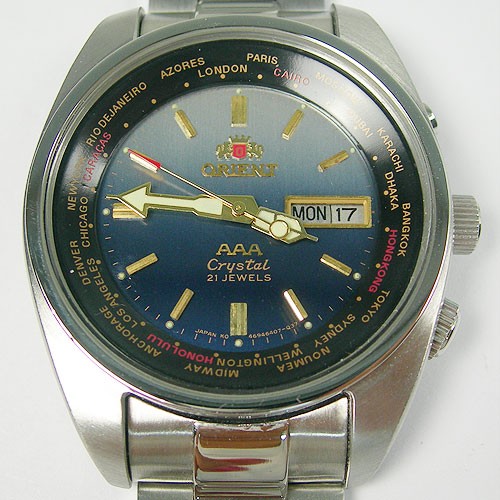 Стрелки не оригинальные, они скорее в духе дайверских Сейко, у Ориента таких никогда не было, но на Еbay их масса. Стрелки никак не соотносятся с дизайном часов в целом и с циферблатом. Циферблат похоже от обычных трех звезд, а должен быть с Надписью SK. Корпус не стальной, о чем написано на некачественно и не по-ориентовски обработанной задней крышке. Браслет не оригинальный, напоминает дешевую подделку Ролекс Субмаринер. Коронки браслета (это та часть, которая примыкает непосредственно к корпусу) такой формы Ориентом также никогда не делались, они тоже а-ля Ролекс из подворотни. Кнопка перевода дня недели сделана некачественно, ее герметичность под сомнением. Второй пост. Подделка № 2. Те же стрелки. На колледже они вообще неуместны. Грубо обработан циферблат. Такие расходящиеся от центра лучи не соответствуют оригиналу (см фото). Надпись Ориент какая-то кривая. Отсутствует надпись Japan внизу циферблата. Механизм 46943, а должен быть, как я понимаю, 46941 – более ранний. На застежке браслета почему-то на писано base metal.. Вот, примерно так. Может быть я что-то упустил? |