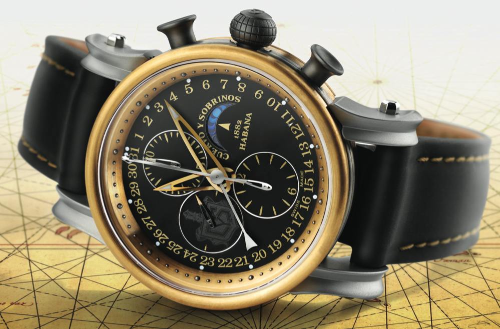 Впрочем, стиль Cuervo y Sobrinos не поддается однозначной классификации. Некоторые называют его "неоколониальным", другие придумали расплывчатый термин "карибская роскошь". Да, есть в этих часах нечто неоколониальное, карибское, роскошное, но в не меньшей степени присутствуют свойственные кубинцам жизнелюбие и чувство юмора, граничащее с гротеском. И в то же время истинно швейцарское дотошное стремление к высочайшему качеству и внимание к мелочам. Корпус Pirata, несмотря на внушительные габариты - 45 х 15 мм, необычайно легок. "Невесомость" достигнута благодаря сочетанию красной меди и титана, из которого изготовлены ушки, заводная головка и желобок в середине корпуса. Задняя крышка представляет собой 8-миллиметровое титановое кольцо с сапфировым иллюминатором. Скелетизированные стрелки из полированного красного золота в форме мечей отлично гармонируют с высоченным фланцем из полированной красной меди. Фланец инкрустирован метками из полированной стали, которые напоминают пушечные ядра. Центральная секундная стрелка из черненой стали очень длинная, а потому ее золотой кончик бежит почти вплотную к стенке. Интересно, что индексы из полированной стали (под пиратское серебро) представляют собой комбинацию римских и арабских цифр в стиле Бреге. В центре 24-часовая шкала GMT из полированной под серебро стали. Между пляшущими арабскими цифрами якоря. Ну и, наконец, дополняют пиратские настроения совершенно необычные для швейцарских часов надписи 1882 Havana и Autorecargante (что означает автоматические)& Cuervo y Sobrinos отличный способ выделиться, нарушить диктат служебно-чиновничьего протокола, сохранив при этом элитарность (все модели этой марки выпускаются строго лимитированными сериями по одной-две на страну). Корпус: 45 мм, высота 15 мм, из красной меди и титана, куполообразное сапфировое стекло с антибликовым покрытием, задняя крышка из титана с сапфировым окном, WR 30 м Циферблат: черный матовый многоуровневый, скелетизированные стрелки из полированного красного золота, центральная секундная стрелка из черненой стали и золота, накладные индексы из полированной стали Механизм: автоматический ЕТА 2893, частота 28 800 пк/ч, запас хода 44 ч, мосты и платина декорированы узором "перлаж" Функции: часы, минуты, секунды, индикатор времени во втором часовом поясе Ремешок: 21 мм, сшитый вручную из кожи аллигатора, с фирменной раскладывающейся застежкой-бабочкой Источник: http://www.mywatch.ru/selwatch/selwatch_85.html |