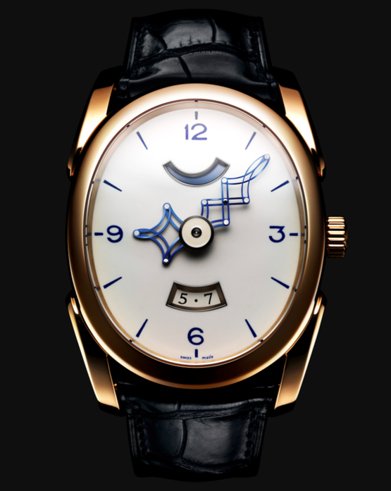 Что-то в нем есть неуловимое от ДеБетюна. Если бы не эти стрелки, на клещи похожие, были бы красивые часы. |