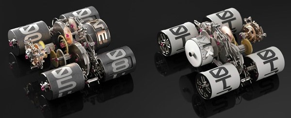 Корпус новинки в чем-то напоминает корпус моделей Cabestan, внешне "разделен" на два блока, будет выполнен из титана, платины, белого или розового золота, длиной 50 мм, шириной 41 мм, в "окнами", защищенными сапфировым стеклом. Модель оснащена механизмом с ручным заводом, с балансовой частотой 18000 полуколебаний в час, двумя заводными барабанами, запасом хода 120 часов, вертикально установленным турбийоном. Цифровая индикация времени осуществляется посредством четырех барабанов, расположенных попарно в двух блоках корпуса. Поставляться будет с ремешками из крокодиловой кожи, а также с черными или белыми резиновыми ремешкмами. В продаже модель ожидается в 2012 году. Вложение 177681Вложение 177682 Вложение 177683 Вложение 177684 Источник: http://www.ablogtoread.com/2lmx-watch/ |