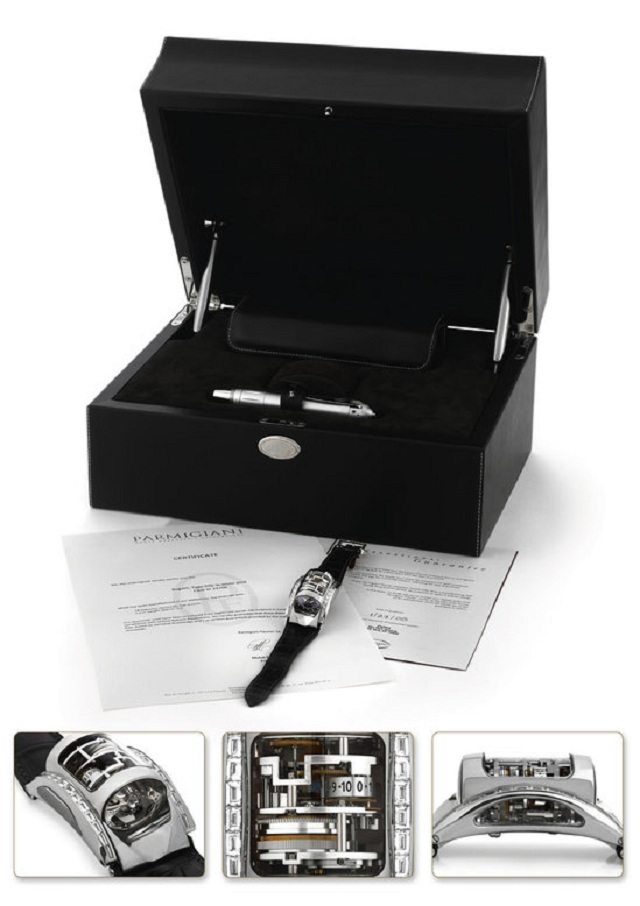 Всего планируется выставить около 450 моделей часов признанных мировых брендов. Среди них будут и часы Malte Chronograph с вечным календарем от Vacheron Constantin. Корпус этой модели выполнен из платины. Хронограф Malte оснащен вечным календарем с указателями, отображающими день недели, дату, месяц и фазы луны. Его механизм автоматически настраивается на количество дней в месяце, то есть осуществляет полный високосный цикл с автоматической коррекцией. Ориентировочная аукционная стоимость часов $180 000 – $220 000. Еще один интересный лот – модель от часового бренда Parmigiani Fleurier под названием Bugatti , Type 370 в белом золоте и бриллиантах, которая вышла в 2007 году. Механизм этих часов с запасом хода на 10 дней сделан в форме автомобильного двигателя и имеет несколько овальных цилиндров. Ее планируют продать за $100 000 – $150 000. Кроме того, на аукционе будут выставляться часы IWC Grand Complication 2008 года в золотом корпусе, Urwerk Ref. 202P Special Edition Twin Turbine Regulation 2009-го года, Patek Philippe Ref. 3970P, Rolex Oyster Perpetual Submariner 1958 года и др. Источник: http://libymax.ru/?p=36365 |