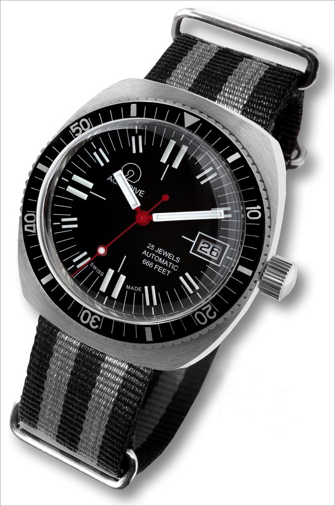 Швейцарская часовая компания Aquadive выпустила новую модель Vintage NOS Diver с применением комплектующих от ранее не использовавшихся оригинальных моделей бренда, выпущенных в 60-х годах прошлого века.
