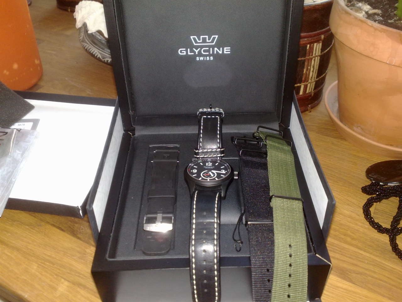 Завершилась моя эпопея с поиском Glycine.... По результатом упорных поисков я стал обладателем замечательной лимитки Glycine Incursore Black Jack Automatic Small Second 3878.99-LB9 Выражаю искреннею благодарность Koffer, как раз благодаря ему я обратил внимания на эту модель. Процесс поисков действительно был долгим у упорным, сначала в германии и италии, а завершился в америке, и как раз из америки я получил долгожданную посылку. |