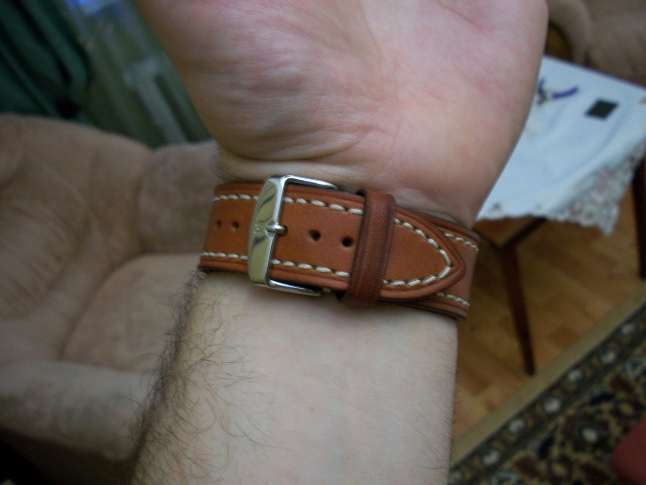 Решил прикупить к своему Пилоту ремешок и неожиданно для самого себя купил светло-коричневый вместо черного:) Раньше ремней никогда не носил, только браслеты, потому низкий поклон всем форумчанам, кто отговорил от покупки дешевого "нонейм" и направил мой взгляд в сторону бренда ХИРШ.