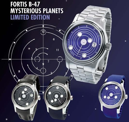 В следующем году швейцарская часовая компания Fortis будет отмечать свой столетний юбилей. В связи с этим событием, бренд сообщил о выпуске новой лимитированной модели B-47 Mysterious Planets. Новинка выпускается в двух вариантах: с синим (ref. 677-20-35-M) и с черным (ref. 677-20-31-L01) циферблатом. Дизайн модели отражает космическую тематику моделей Fortis и вдохновлен планетами Солнечной системы.
