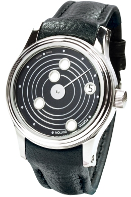 Круглый корпус из нержавеющей стали, водонепроницаемый до 200 метров. Сапфировое стекло защищает вращающийся циферблат, на котором представлены Меркурий, Венера, Земля, Марс и Юпитер и их орбиты вокруг Солнца. Каждая из планет представляет из себя апертуру, в которых неожиданно и случайно каждый час появляются соответствующие арабские цифры. Такой способ индикации времени, действительно отличает B-47 Mysterious Planets от других наручных астрономических часов, выпускаемых в настоящее время. Модель оснащена автоматическим механизмом. Поставляется на браслете из нержавеющей стали, на черном кожаном ремешке, на черном каучуковом ремешке или на ремешке из синего силикона. Лимитированный выпуск 500 экземпляров. Цена модели от $ 5500 и зависит от выбранного ремешка. Вложение 187418Вложение 187419 Источник: http://gevrilgroup.com/watchbrands/n...on-collection/ |