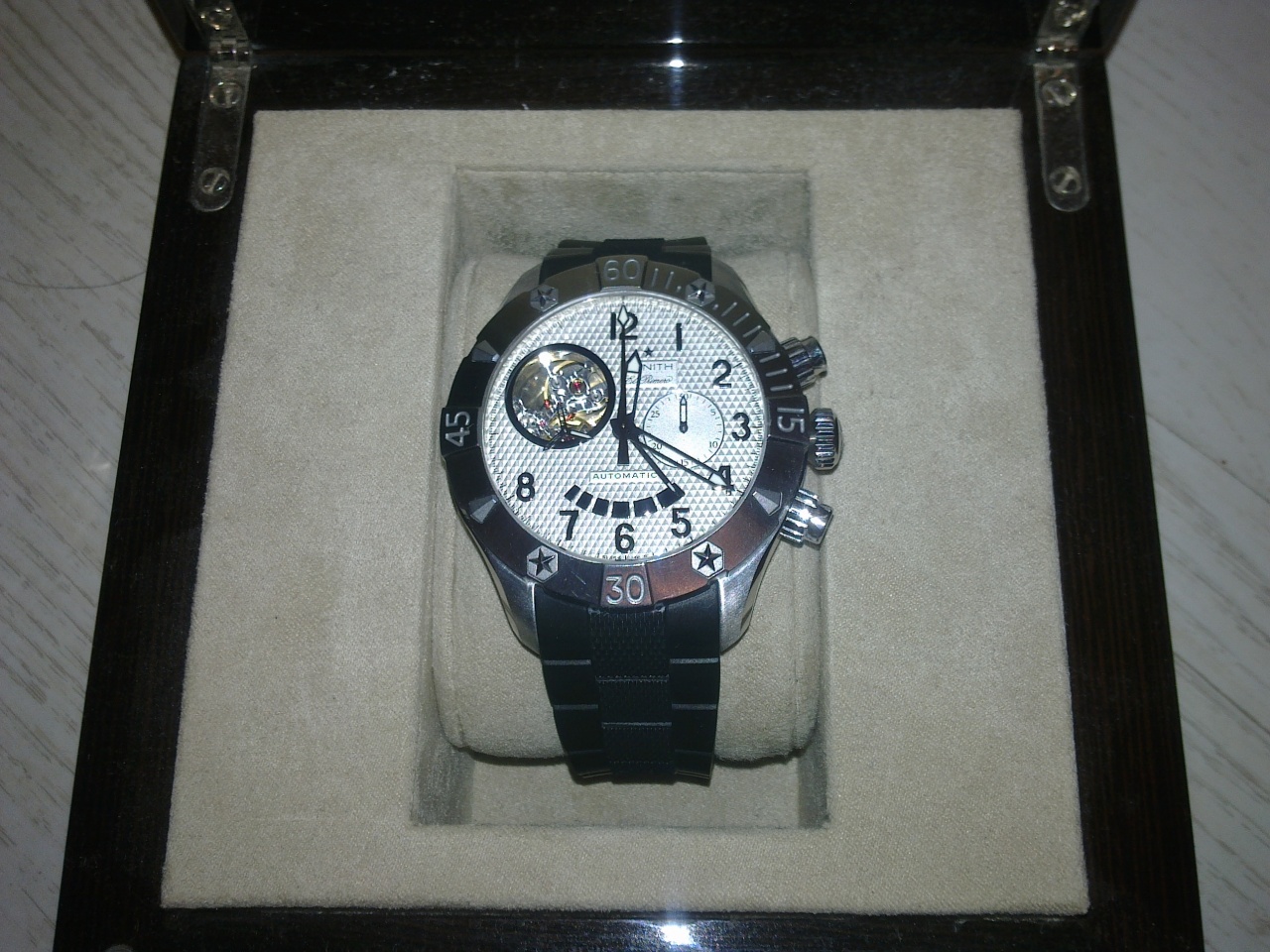 Zenith DEFY CLASSIC OPEN CHRONOGRAPH 43 мм., каучук, полный комплект, куплены июнь 2011, состояние новых, одевались несколько раз.