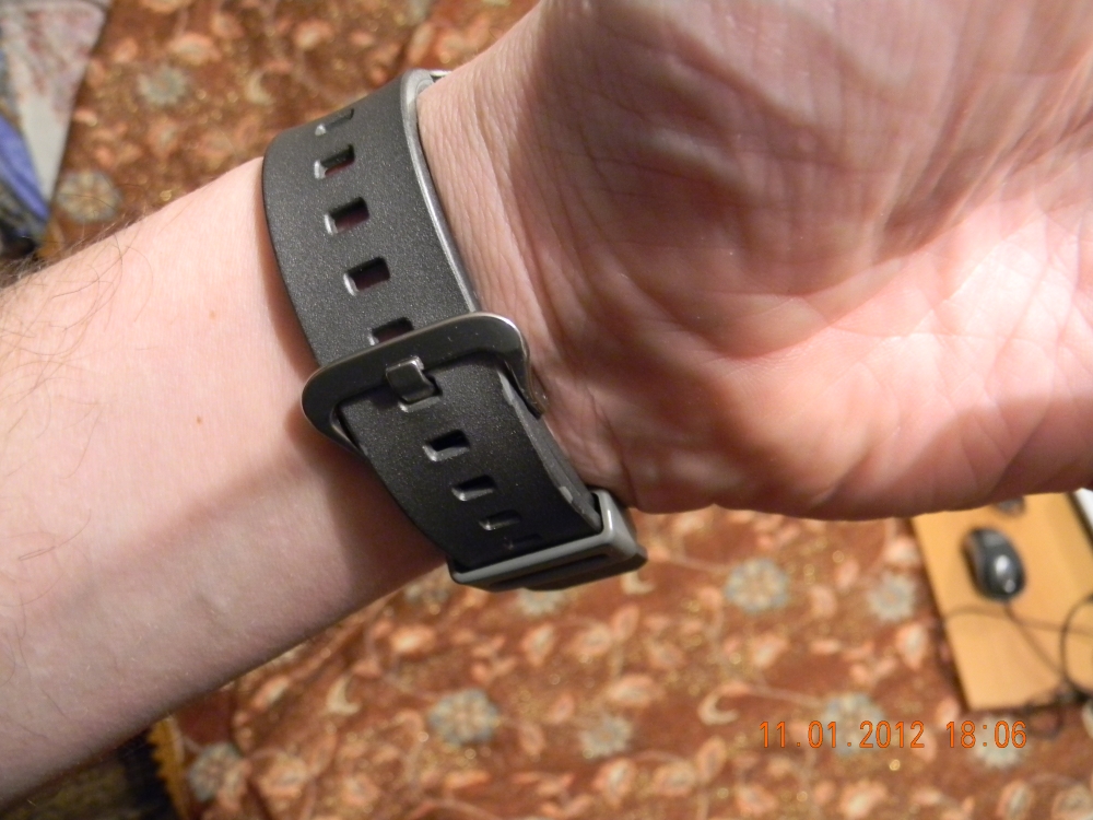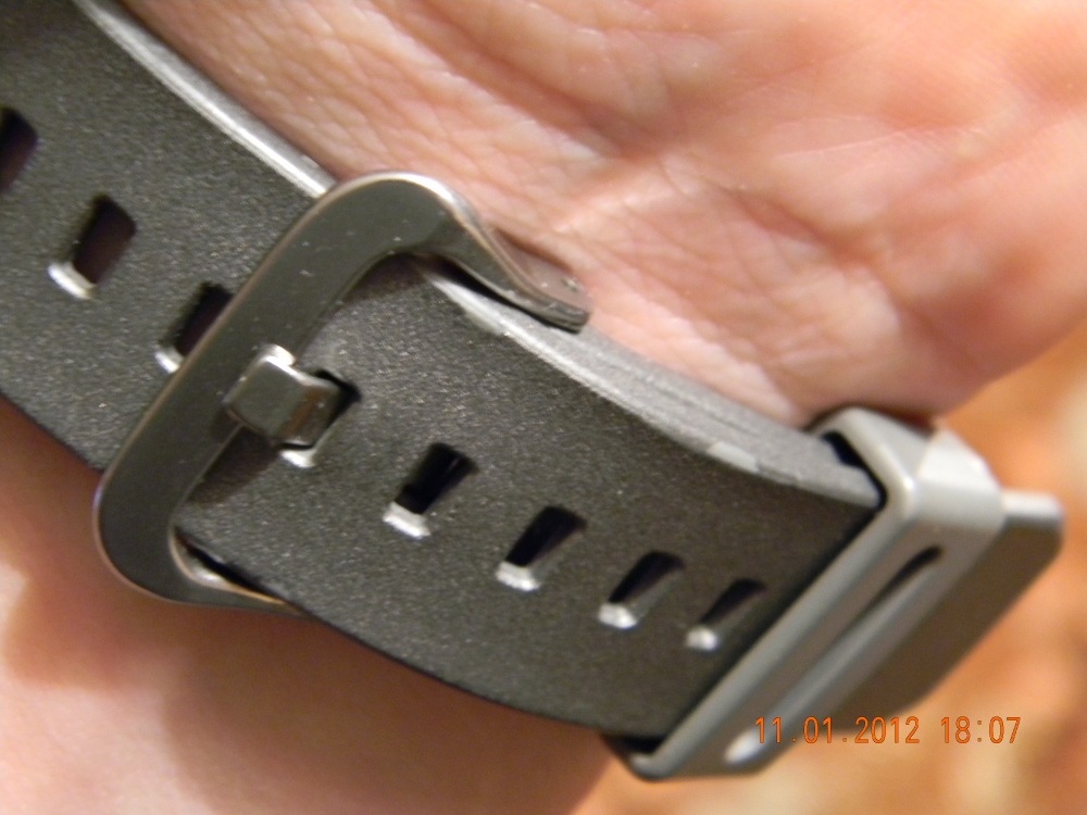 В общем, выдержала краска на ремешке полтора года и того-с, начала облезать в самом изгибаемом месте (смотрим фото). Не могу сказать, что данный факт меня очень уж сильно расстроил, тем более, что ремешок изначально сделан из серого пластика и пострадавшие участки не слишком бросаются в глаза. Скорее - удивил.