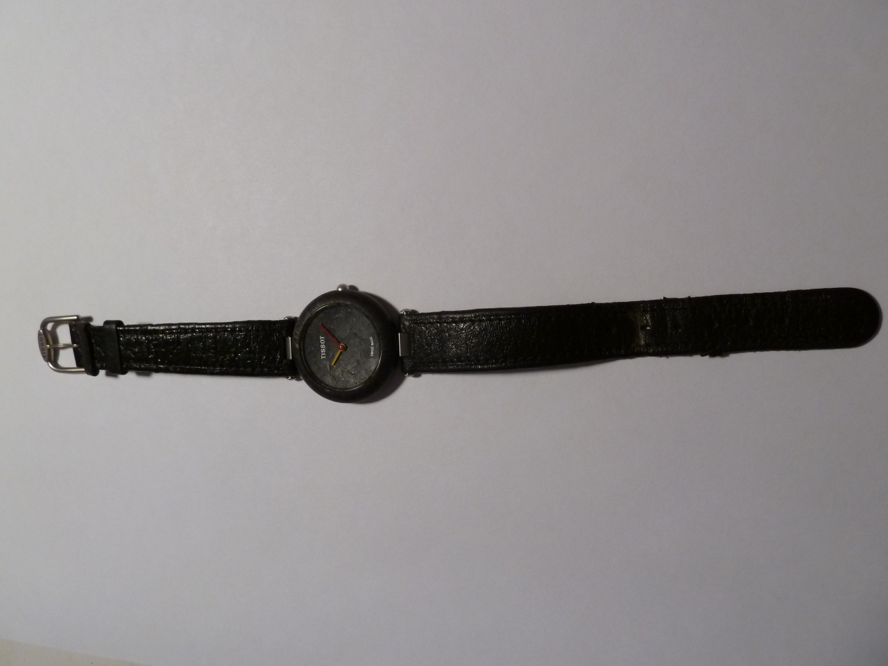 Продаются редкие швейцарские часы Tissot RockWatch R150 с циферблатом из черного гранита (Швейцарские Альпы). Кварцевые. Выпущены в конце 80-х. Подходят и мужчинам, и женщинам (унисекс). Часы в очень хорошем состоянии, незначительно потерт кожаный ремешок, при ношении этого не заметно. Все детали оригинальные, на ремешке остались штампы производителя. Вставлена новая батарейка. Размер циферблата - 30 мм. Ремешок черный. Задняя крышка металлическая.