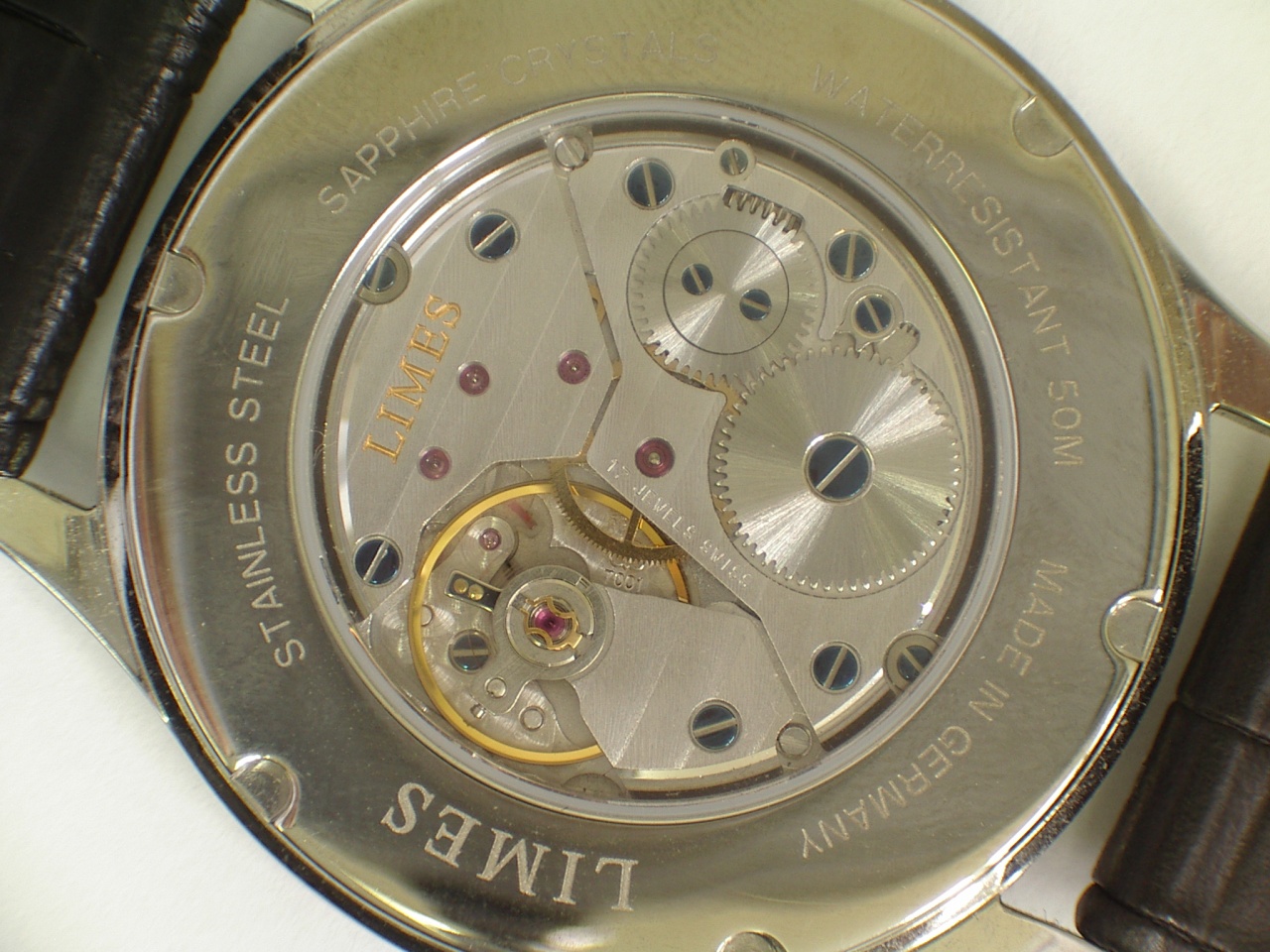 Тонкий корпус - 6 мм, сапфиры (верхний - выпуклый), гильошированный циферблат, серебряные метки и стрелки "альфа", малая секунда