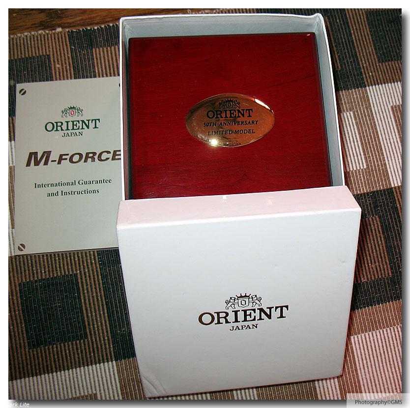 Открыв наружную бумажную коробку, мы обнаруживаем очень красивую и элегантную деревянную внутреннюю коробку (может же Ориент сделать здорово, когда хочет), в которой и находятся сами часы.