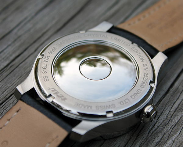 Произведены часы в Швейцарии. Кварцевый механизм Ronda. Корпус диаметром 44 мм сделан из стали 316L. Высота корпуса 13.5 мм. Стекло куполообразный сапфир. Ремешок кожаный с водозащитной пропиткой шириной 22 мм. Застёжка бабочка с буквами М21. Стрелки и метки покрыты светонакопительным составом Superluminova. Водозащита 50 м. Задняя крышка глухая с уникальным номером.