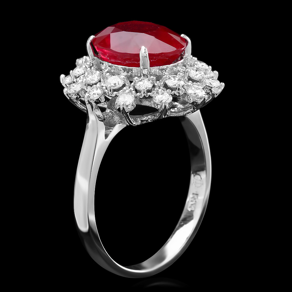 Кольцо – Белое золото; рубин 5,0 карат; 24 бриллианта на 0,8 карата + Сертификат