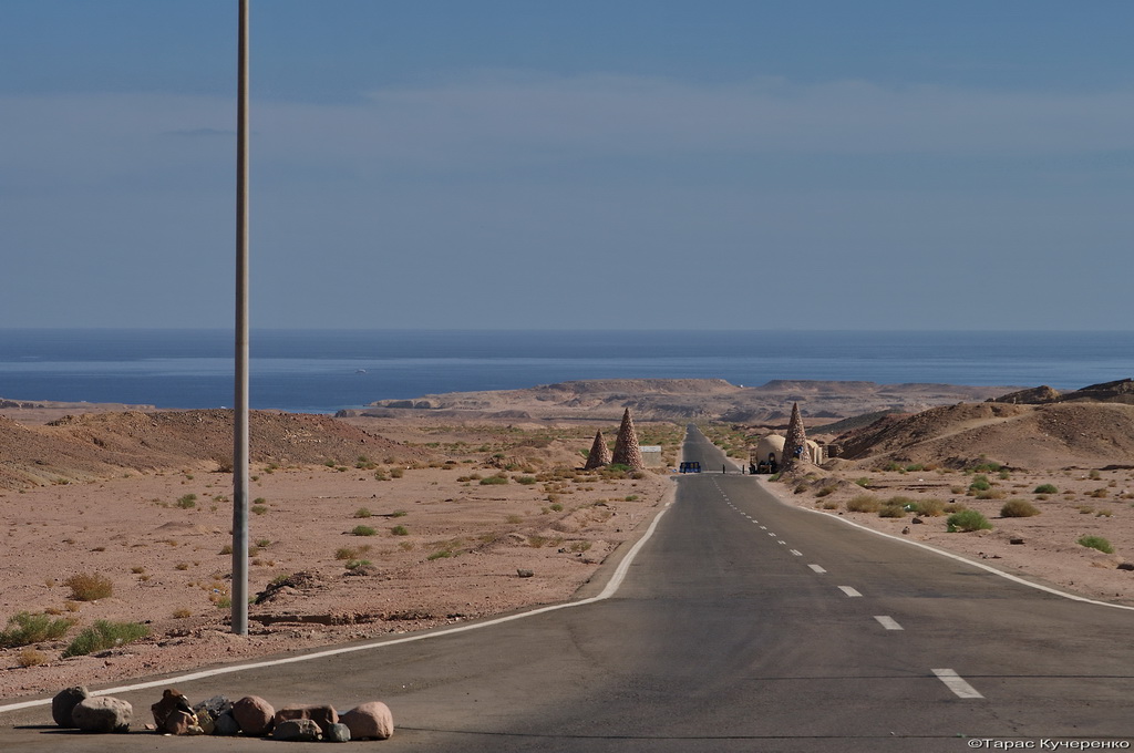 Еще интересный факт. Это самая южная точка Синайского полуострова, вдалеке виднеется Хургада, по морю всего лишь 25 миль, а по суше 1200 километров. Во как!