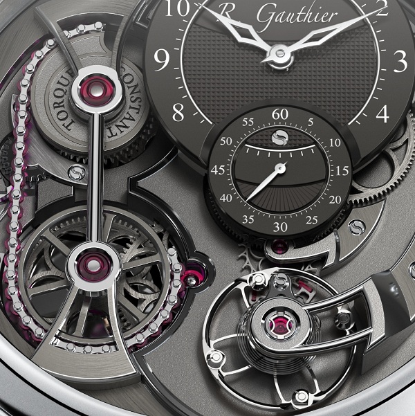 Модель оснащена мануфактурным швейцарским механизмом с ручным заводом, диаметром 35,5 мм, толщиной 10,5 мм, на 30 камнях (плюс 34 камня - в фузейно-цепной передаче, соединённая с барабаном, обеспечивающей постоянную силу в течение всего времени работы калибра и просматриваемой на лицевой стороне корпуса), состоящем из 333 деталей, с балансовой частотой 28800 полуколебаний в час (4 гц), 60-часовым запасом хода, функциями индикации часов, минут (посредством соответствующих стрелок на декцентрализованном малом циферблате с арабскими цифрами), секунд (на малом боковом циферблате, расположеннном на 3 часах) и запаса хода (на круглом аналоговом указателе, расположенном на обратной стороне механизма и просматриваемом через сапфировое стекло на задней крышке корпуса). Калибр отменно отделан и декорирован в соответствии со всеми канонами Haute Horlogerie, конструкции его отдельных узлов защищены тремя патентами.