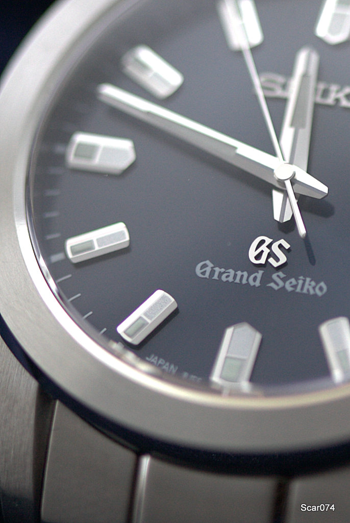 На форуме уже очень много говорилось про филигранную обработку всего, что находится на циферблате: четкость граней полированных часовых меток и стрелок впечатляет. Нет ни намека на нарочитую грубость присущую некоторым моделям Seiko, все очень изящно и аккуратно, но мужественно. По виду, в принципе небольшие часы, вряд ли язык повернется назвать женскими. Изящные мужские часы. На циферблате традиционно присутствует готическая вязь GS и Grand Seiko.