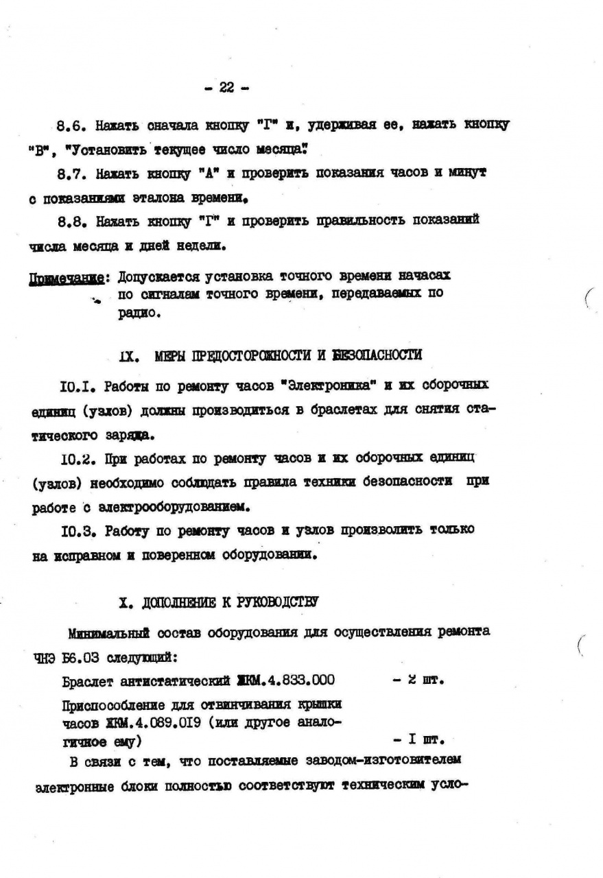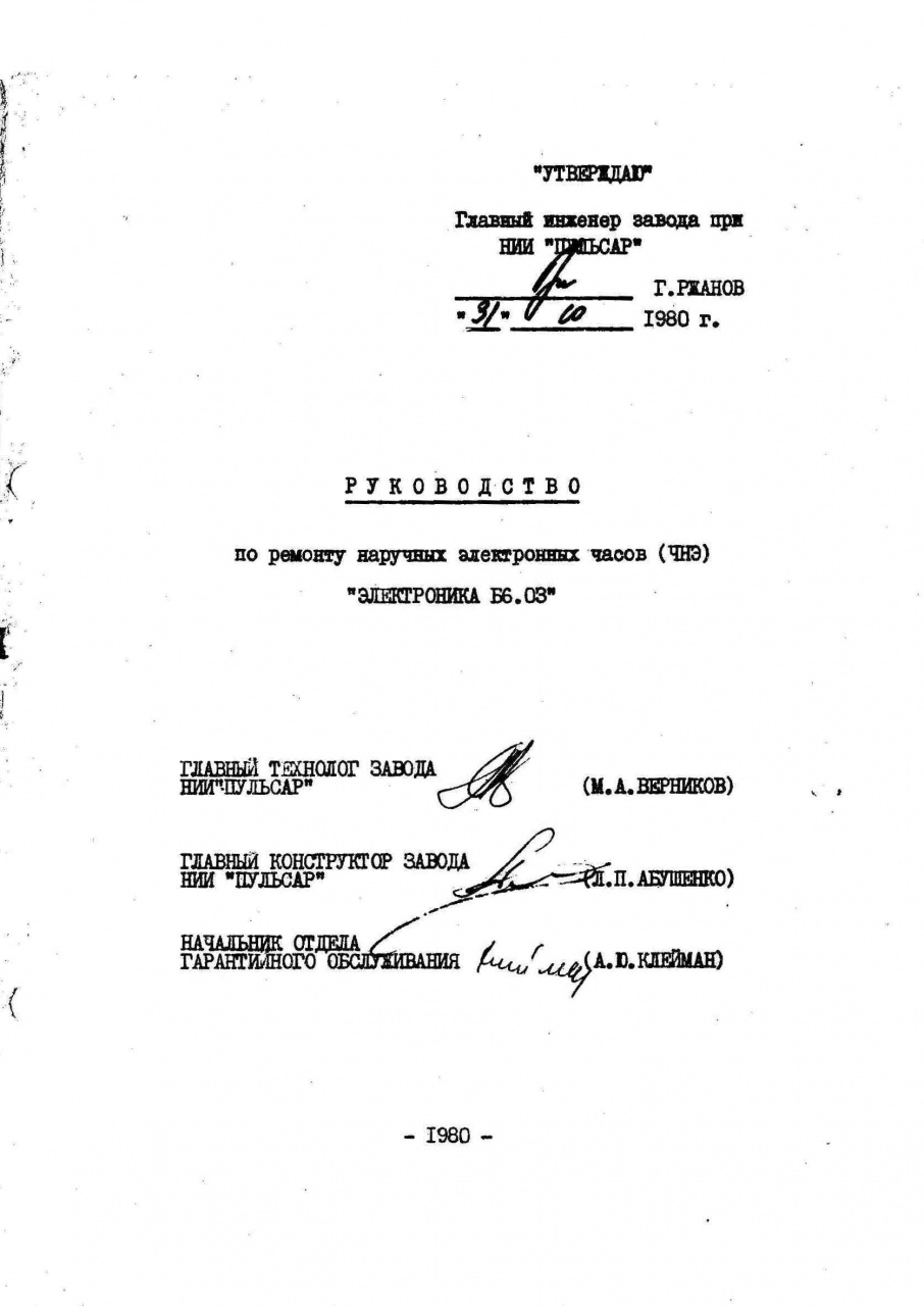 Заводская документация, по ремонту часов Электроника