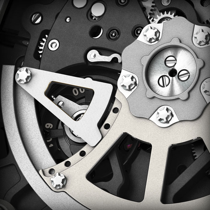 Automatic Flyback Chronograph RM 11-01 Roberto Mancini оснащена автоматическим калибром RMAC1 с годовым календарем, fly-back хронографом с центральной минутной стрелкой и циферблатом, разделенным на периоды игры: 45 минут тайма и 15 минут перерыва. Кнопкой на «4 часа» активируется функция fly-back – стрелка хронографа возвращается на «12 часов» и начинается отсчет второго тайма. Если назначается дополнительное время, fly-back функция реактивируется, и часы показывают два промежутка по 15 минут дополнительного времени, и до пяти минут перерыва.