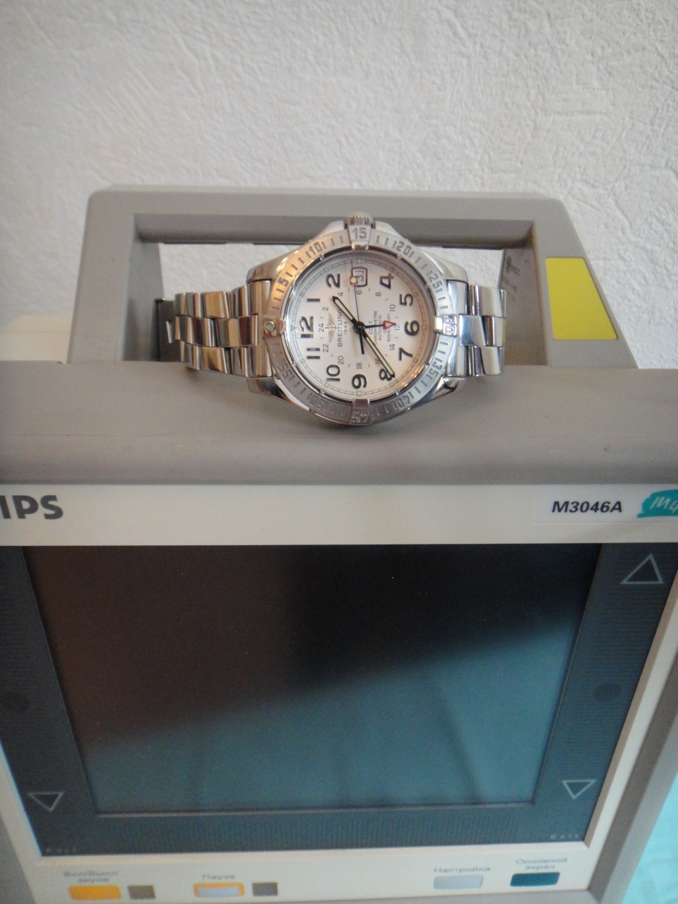 Пришло время и возраст подобрать для себя добротные и, можно сказать, в хорошем смысле этого слова, культовые часы. Выбор пал на Брайты. И как раз на форуме продавалась подходящая модель, которая и по размеру (небольшое запястье), и по функционалу (нужно было второе время) попадала в точку. Так что недолго колебавшись и собравшись с финансовыми силами, стал обладателем вот такого прибора. А поскольку работаю в экстренной медицине, то по качеству и надежности возникла аналогия с кардиомонитором. Отсюда и такой фотоотчет. Прошу не судить строго за такую фантазию.