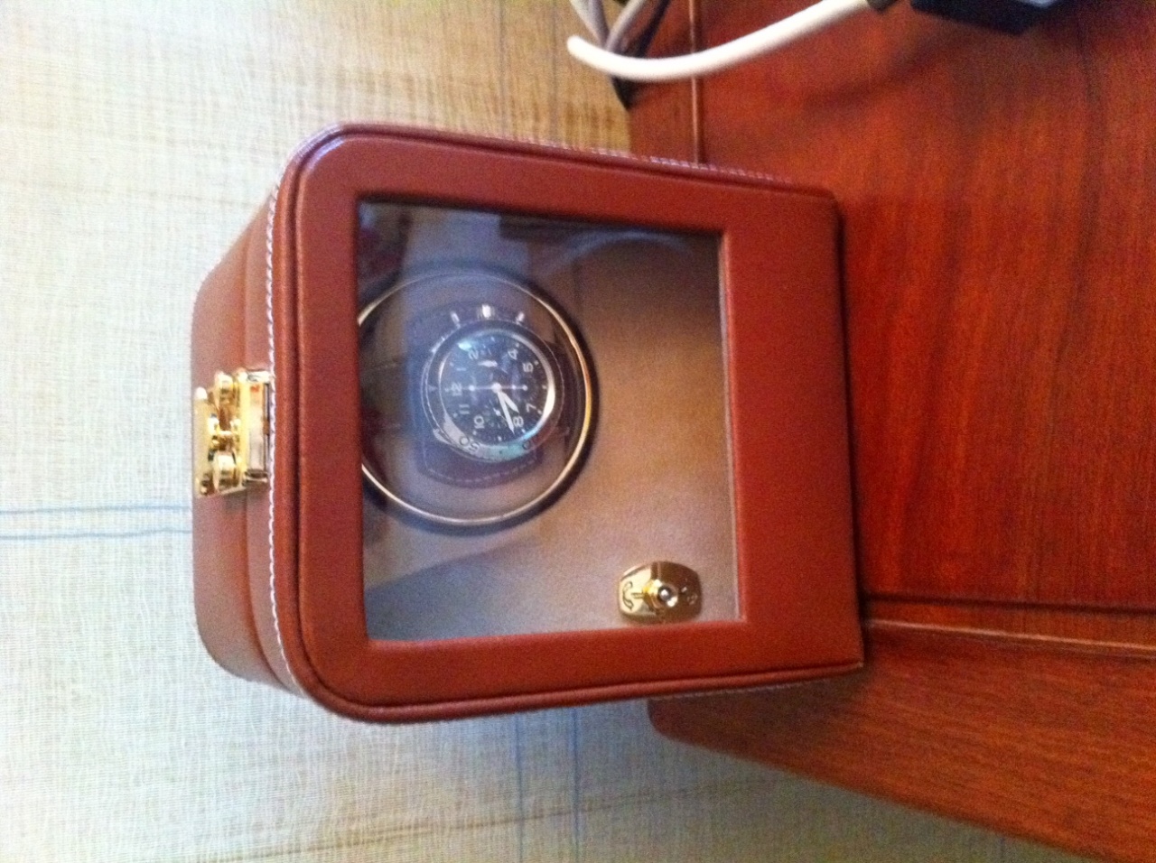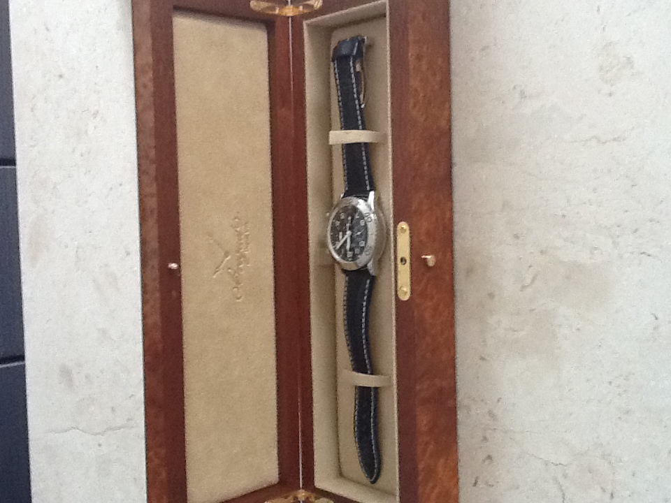 Часы ждут нового владельца в виндере и на новом коричневом оригинальном крокодиле