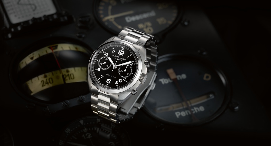 Новая модель Khaki Pilot Pioneer Auto Chrono от швейцарской часовой компании HAMILTON имеет круглый корпус из нержавеющей стали, диаметром 41 мм, водонепроницаемый до 100 метров. Завинчивающаяся заводная головка расположена на 3 часах, пушеры хронографа - на 2 и 4 часах. Сапфировое стекло установлено на передней стороне корпуса (с антибликовым покрытием) и на его завинчивающейся задней крышке. Циферблат матово-черный или цвета слоновой кости, с арабскими цифрами, часовой и минутной стрелками, покрытыми белым люминесцентным составом SuperLumiNova.